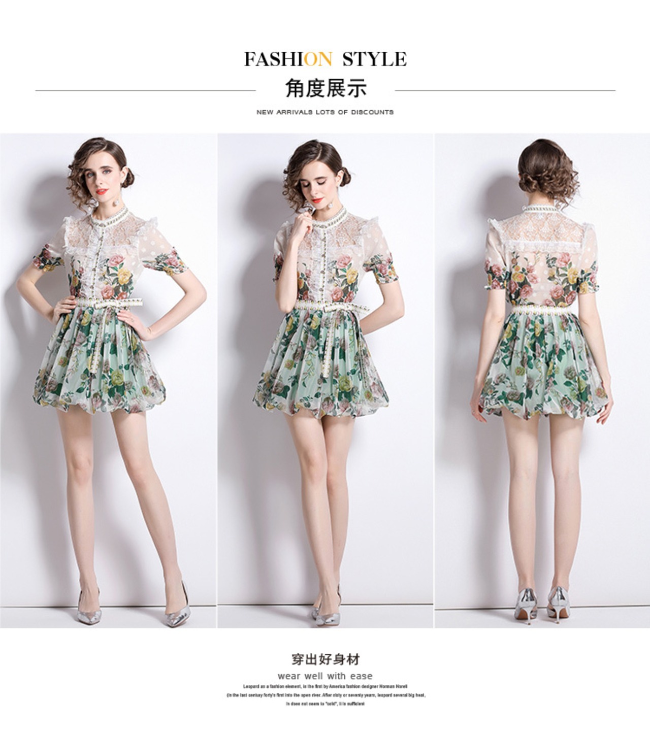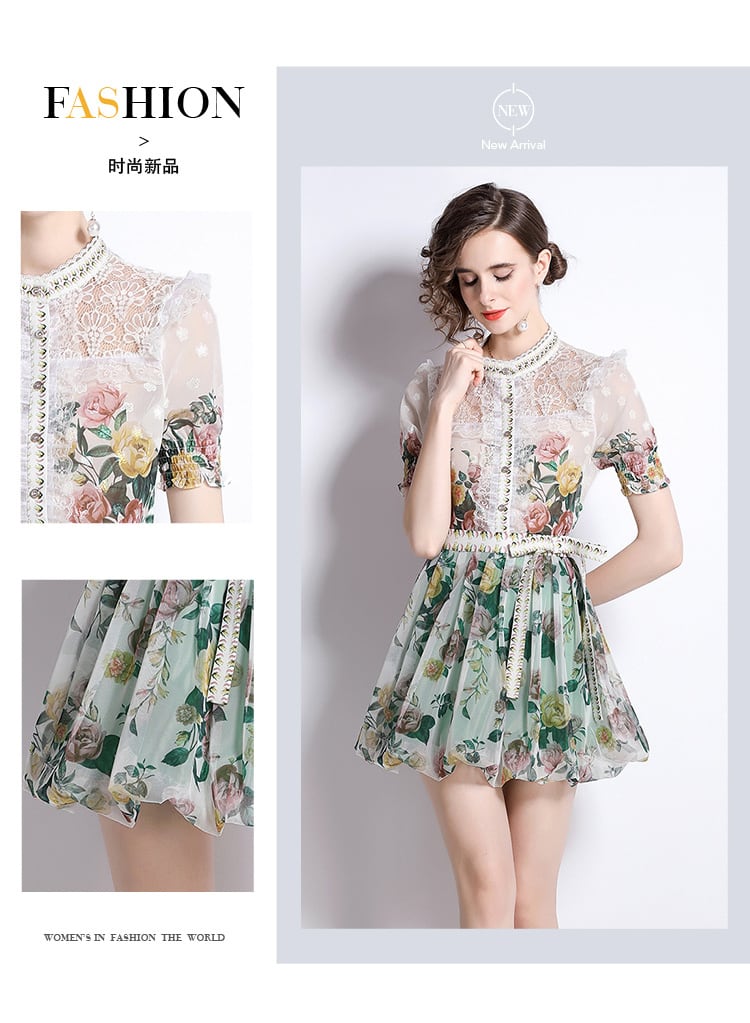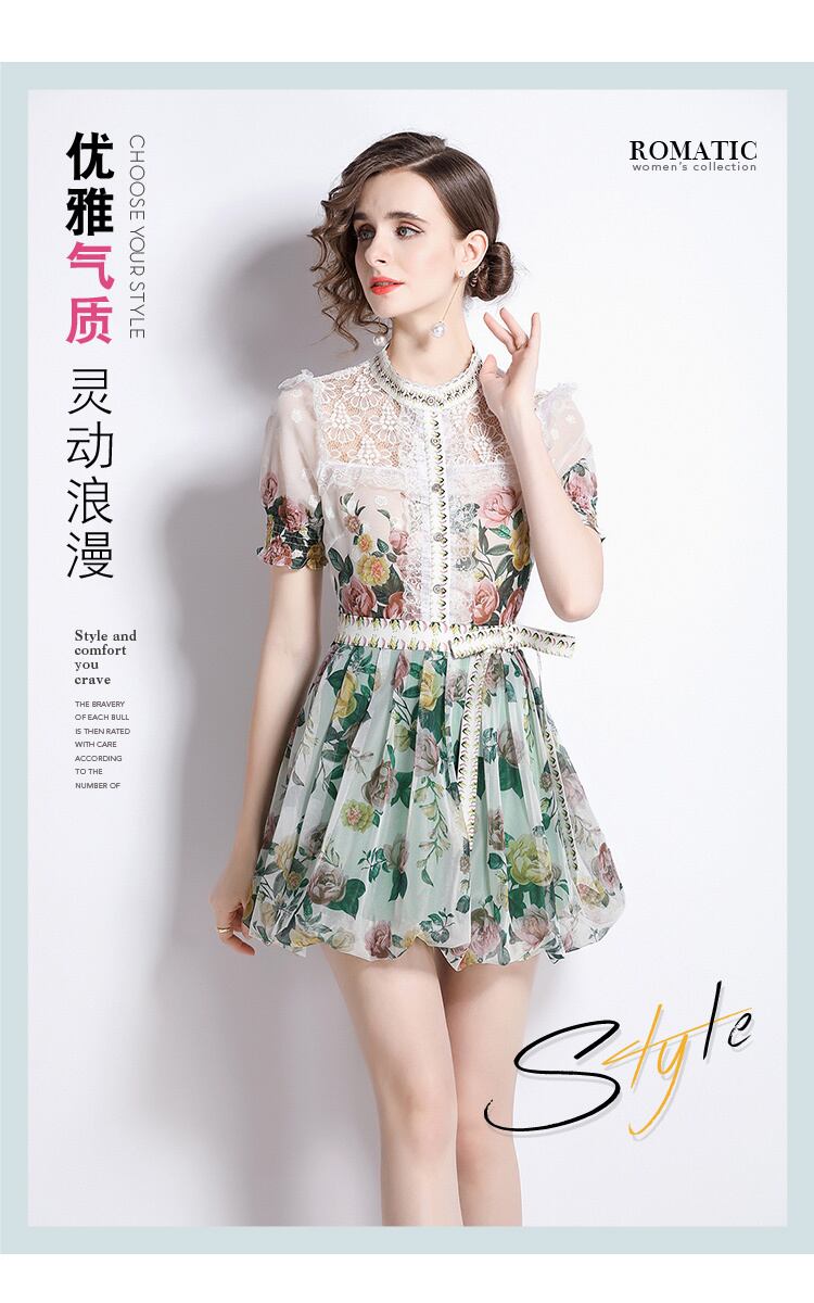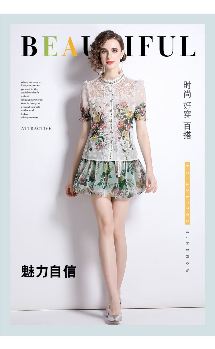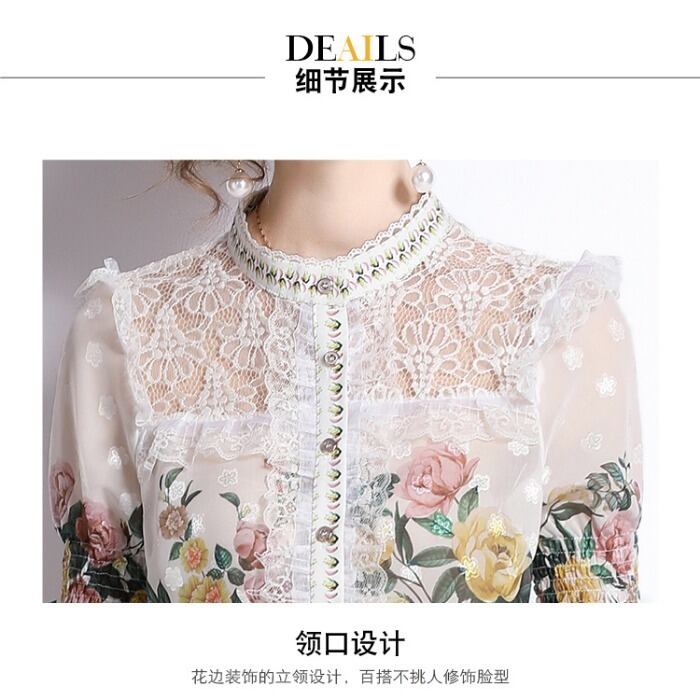 Discount Store Mall Counters Withdrawal Women's Final Clearance Lace Trumpet Sleeve Top + Mesh A-Line Printed Skirt レース プリント メッシュ スカート Aライン missry46477331219 | guttiy