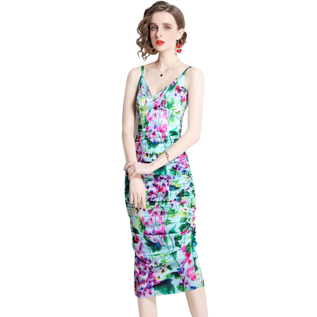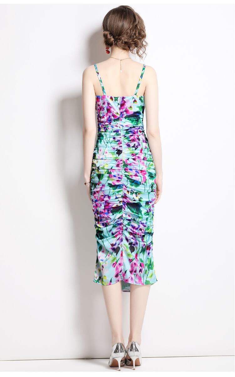 Discount Store Mall Counters Withdrawal Women's Clearance Slings Backless Pleated Satin Stretch Tight Dress プリーツ サテン missry58019969894 | guttiy