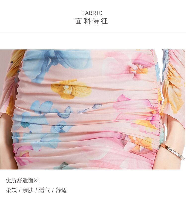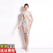 Discount Store Mall Counters Withdrawal Women's Final Clearance Sexy Square Neck Stretch Yarn Printed Folded Dress プリント スクウェア missry11554993735 | guttiy
