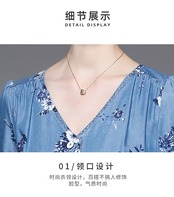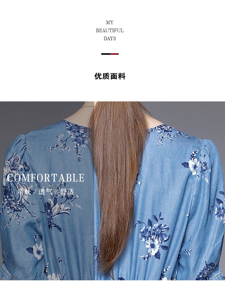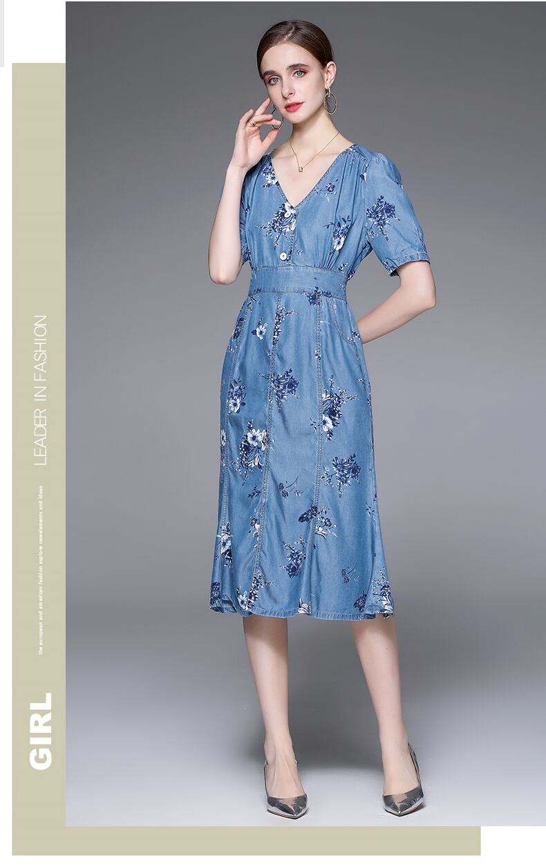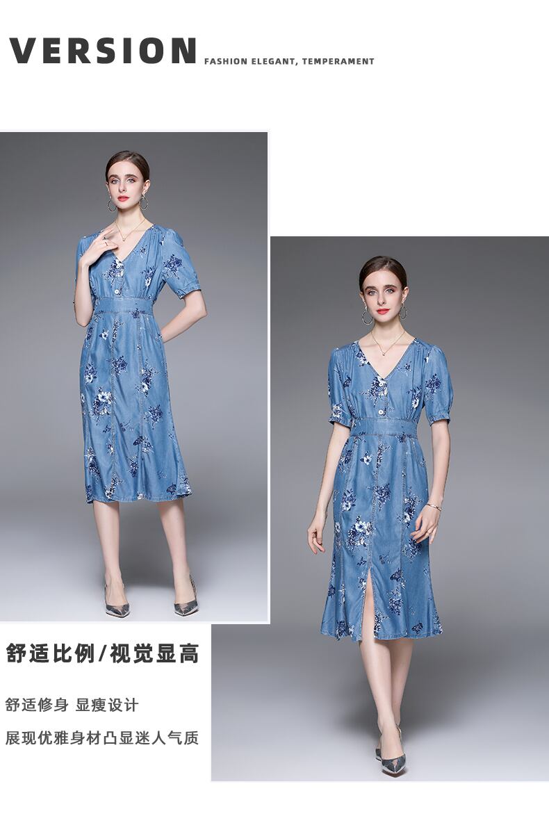 Discount store mall counters withdrawn women's clothing tail goods clearance show thin waist V-neck printed denim dress プリント Vネック missry46915705993 | guttiy