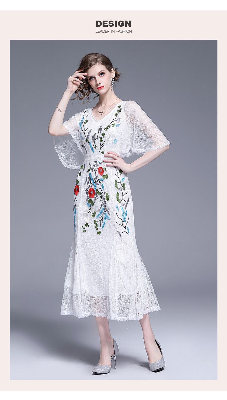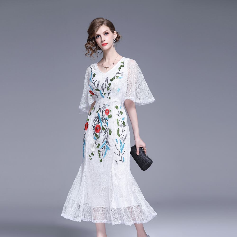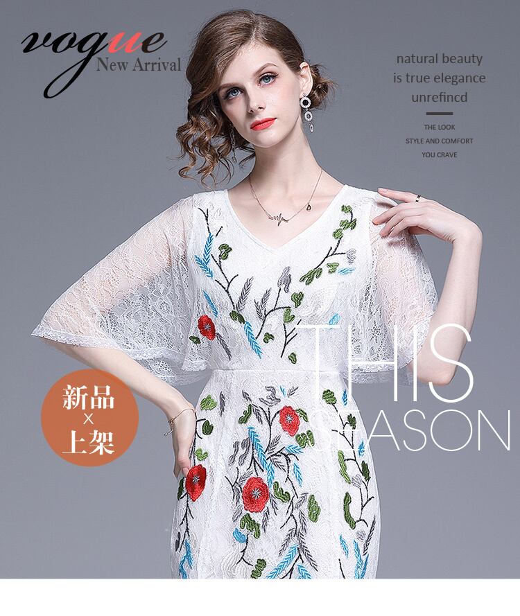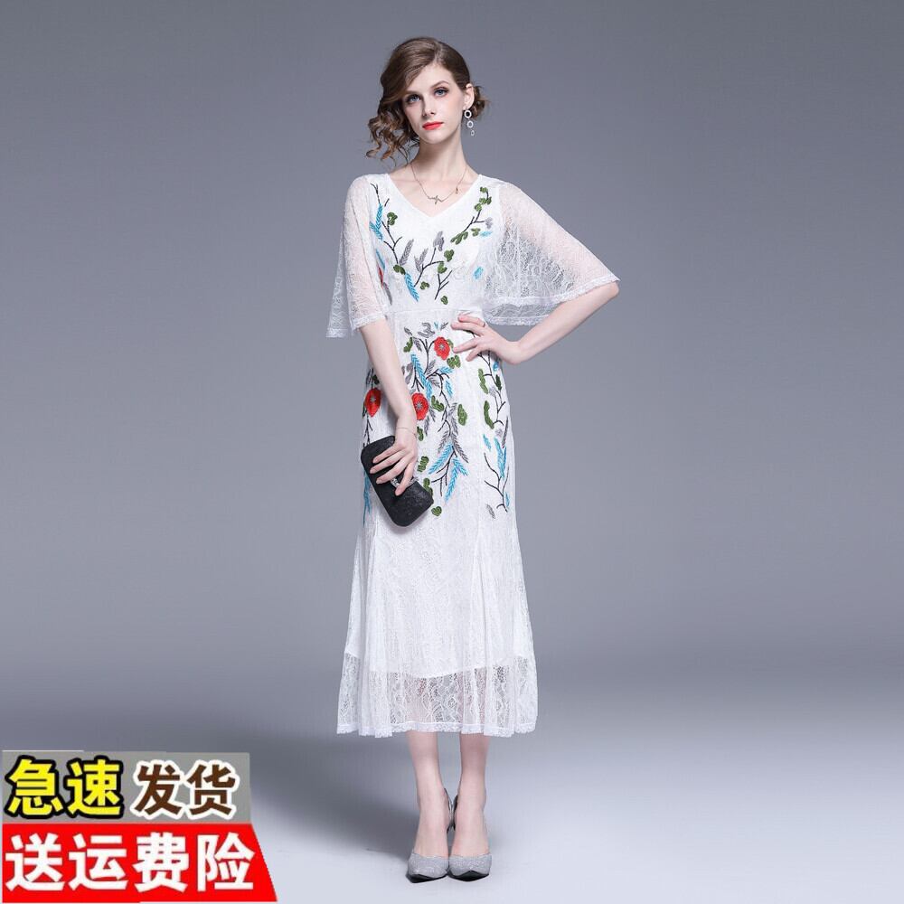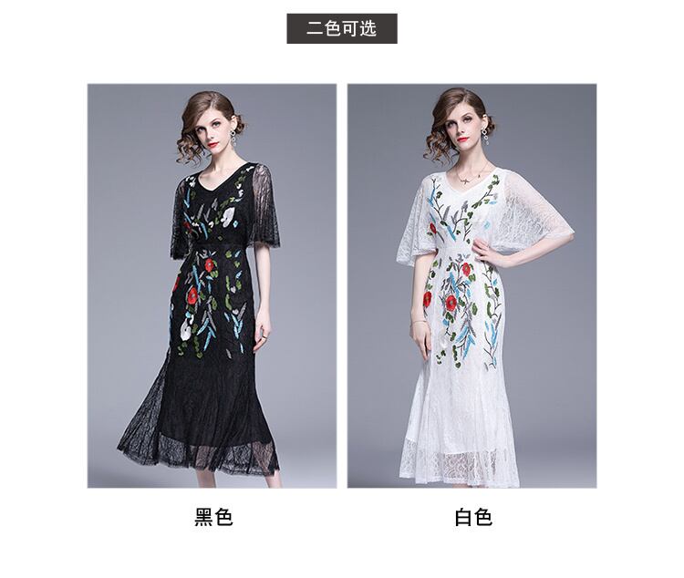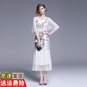 Discount store mall counters withdrawn women's clothing tail goods clearance summer clothing V-neck short-sleeved lace embroidered fishtail dress レッド レース 刺繍 サマー 夏物 Vネック missry88182360332 | guttiy