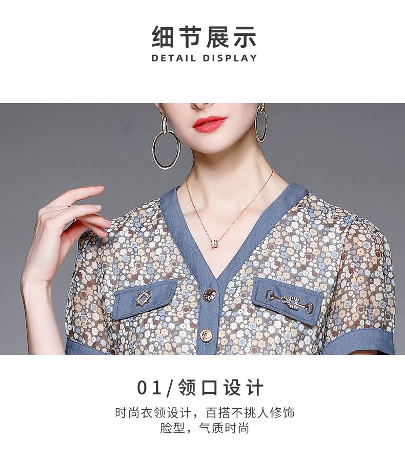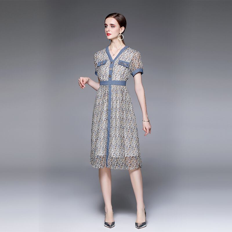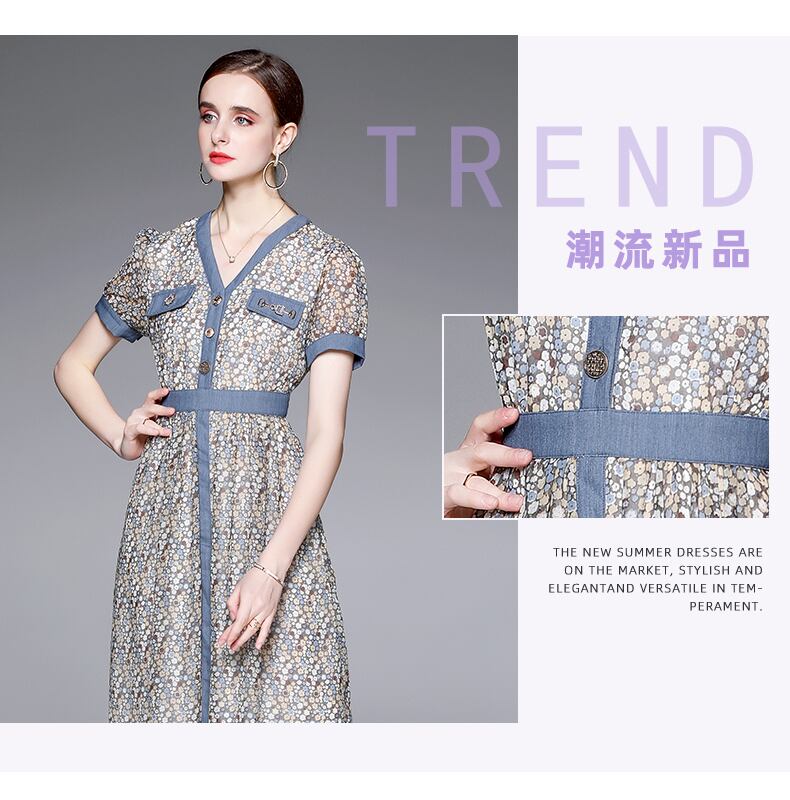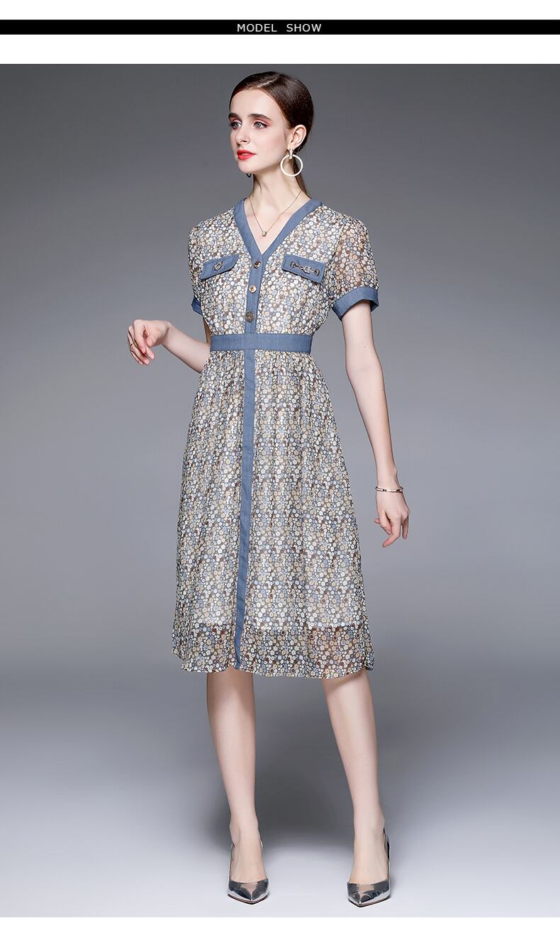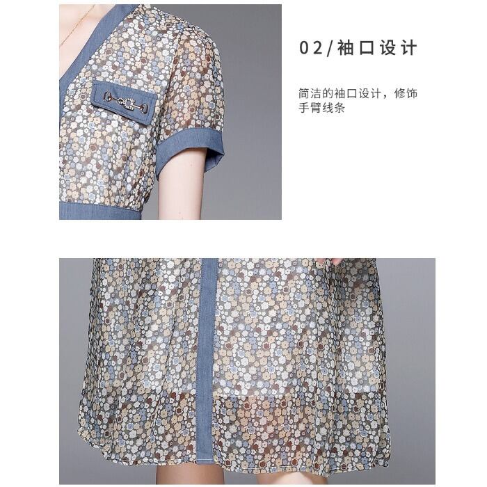 Discount store mall counters withdrawn women's clothing tail goods clearance Western style age-reducing chiffon stitching denim dress シフォン ステッチ missry98795017311 | guttiy
