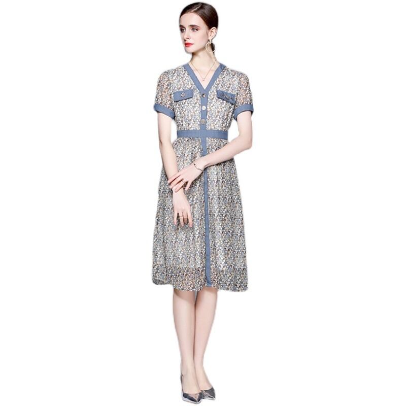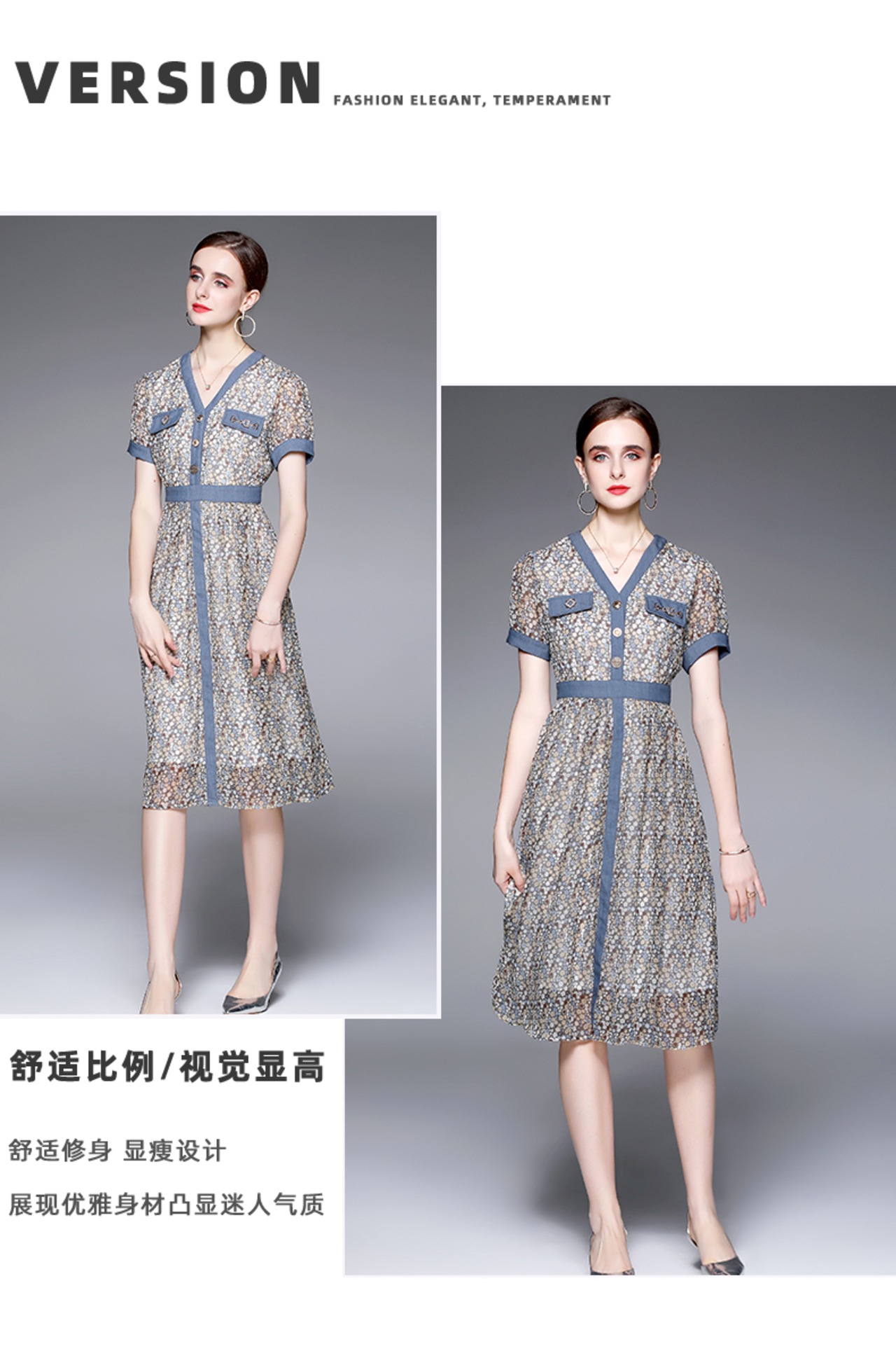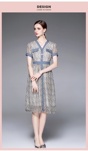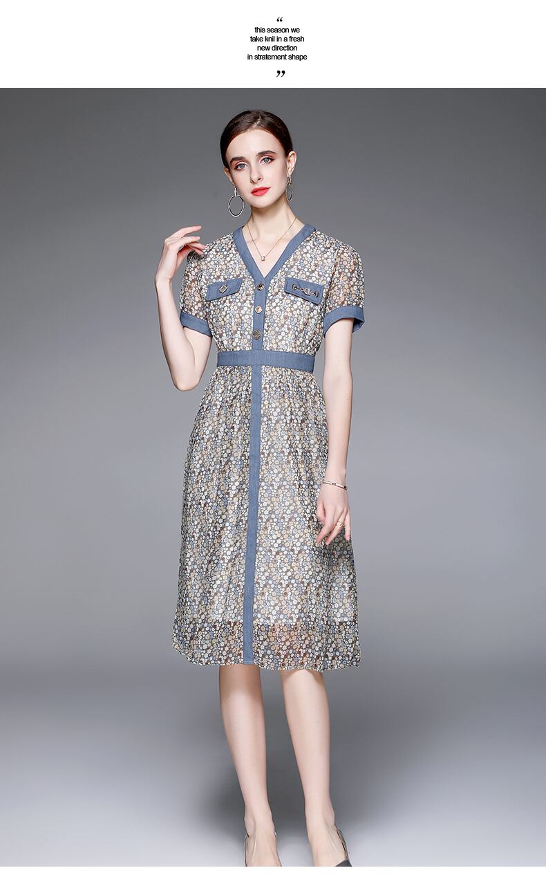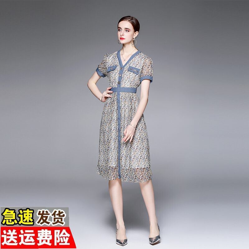 Discount store mall counters withdrawn women's clothing tail goods clearance Western style age-reducing chiffon stitching denim dress シフォン ステッチ missry98795017311 | guttiy