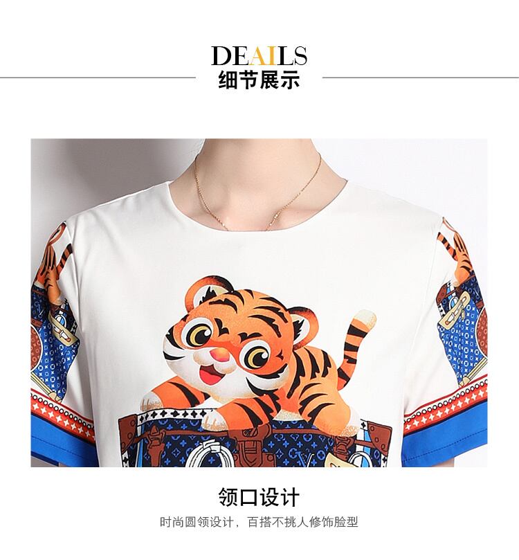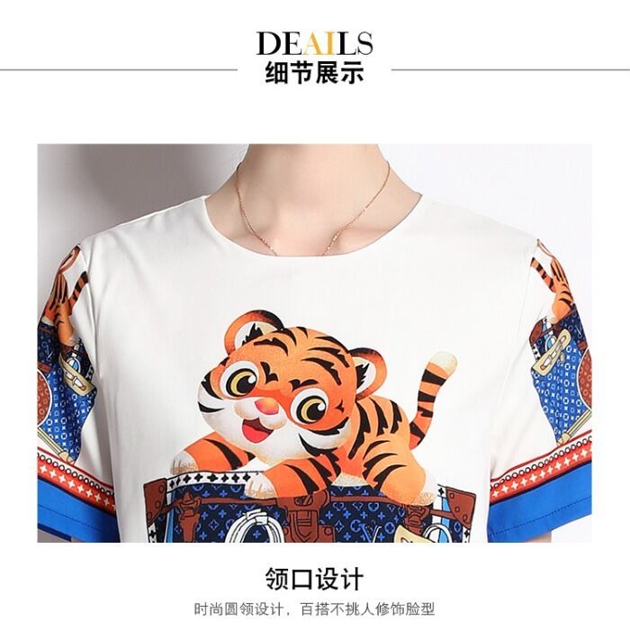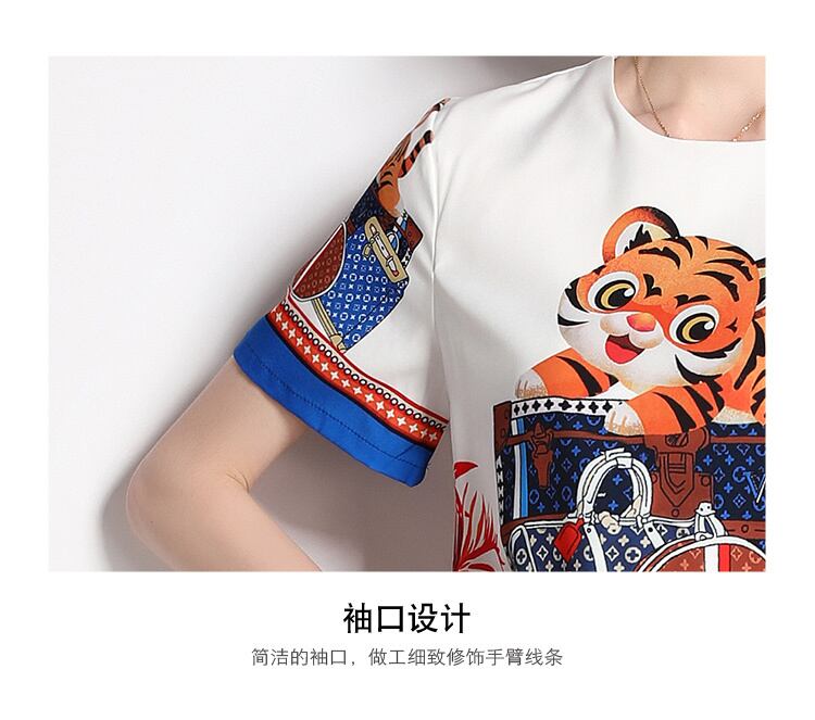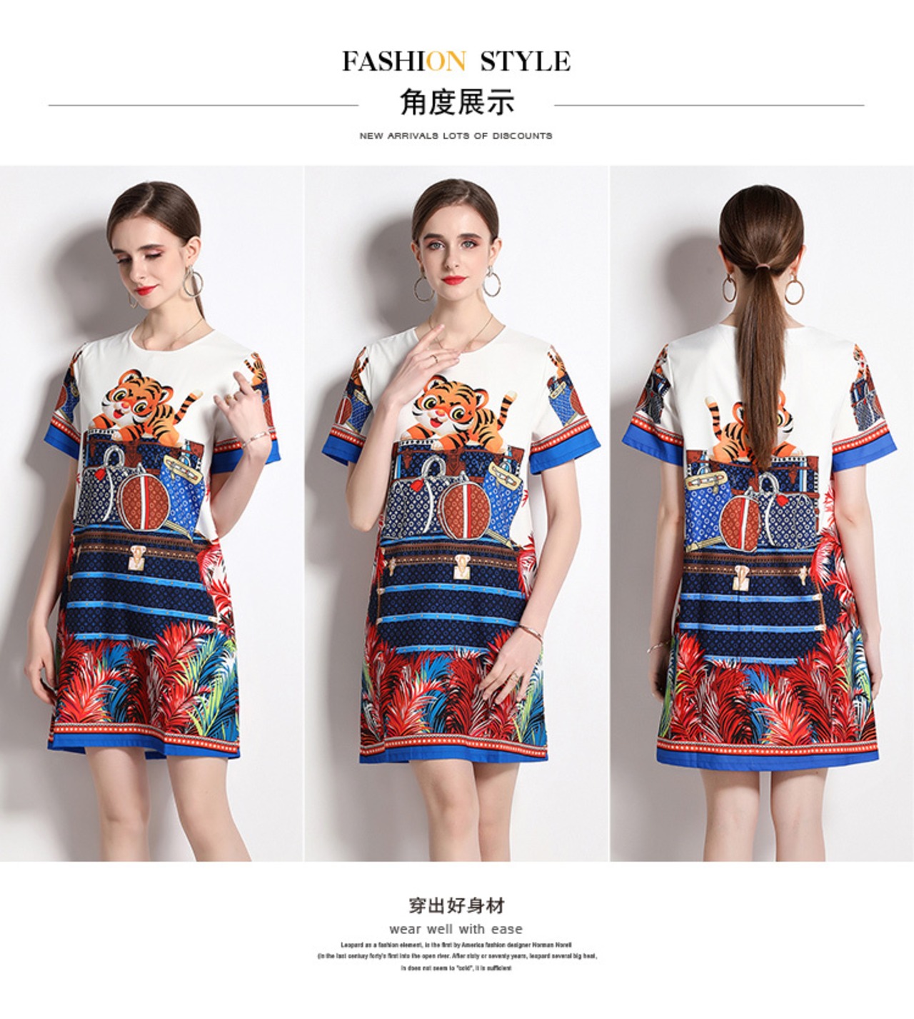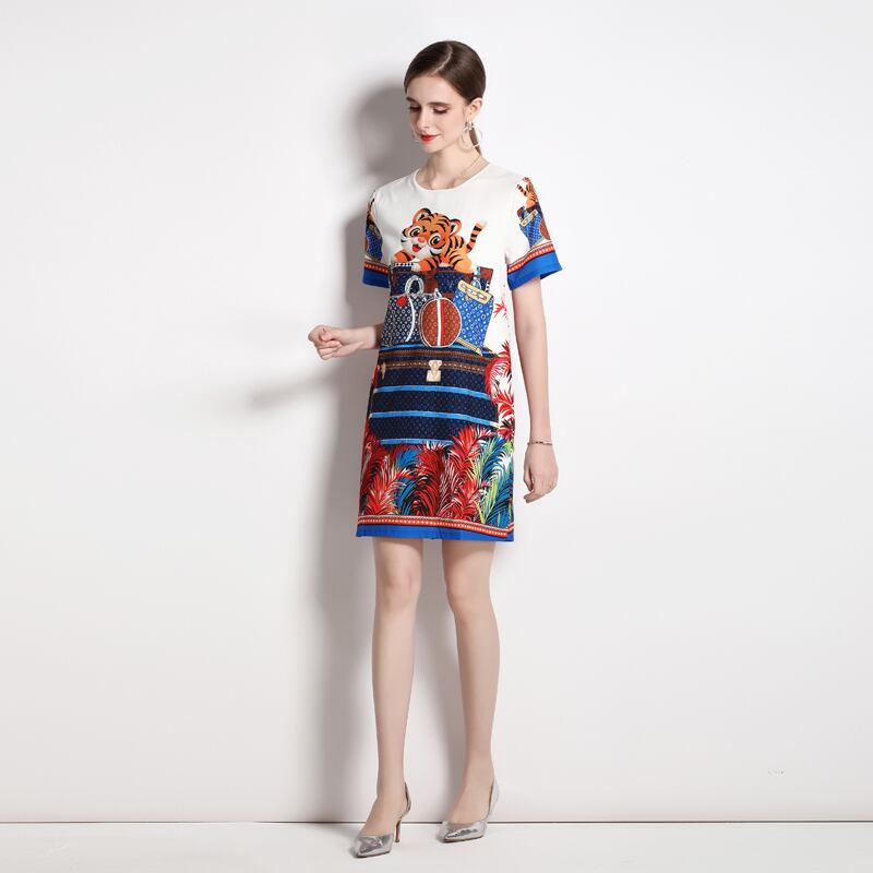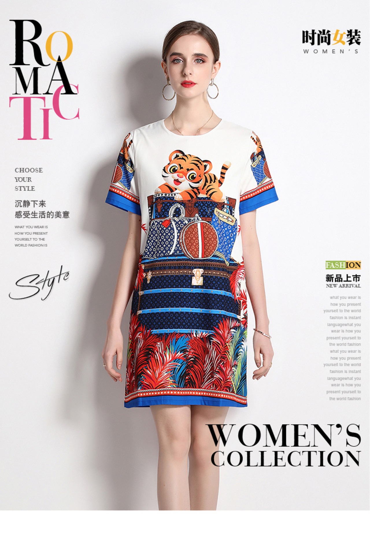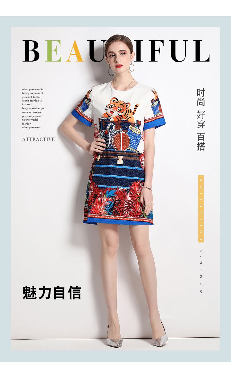 Discount store mall counter withdrawal women's clothing clearance retro tiger blue and white print short-sleeved dress ホワイト ブルー レトロ missry15401935354 | guttiy