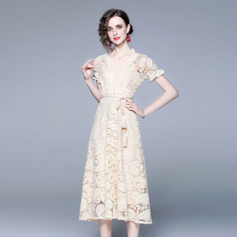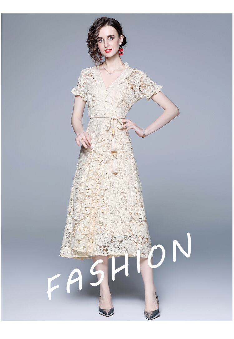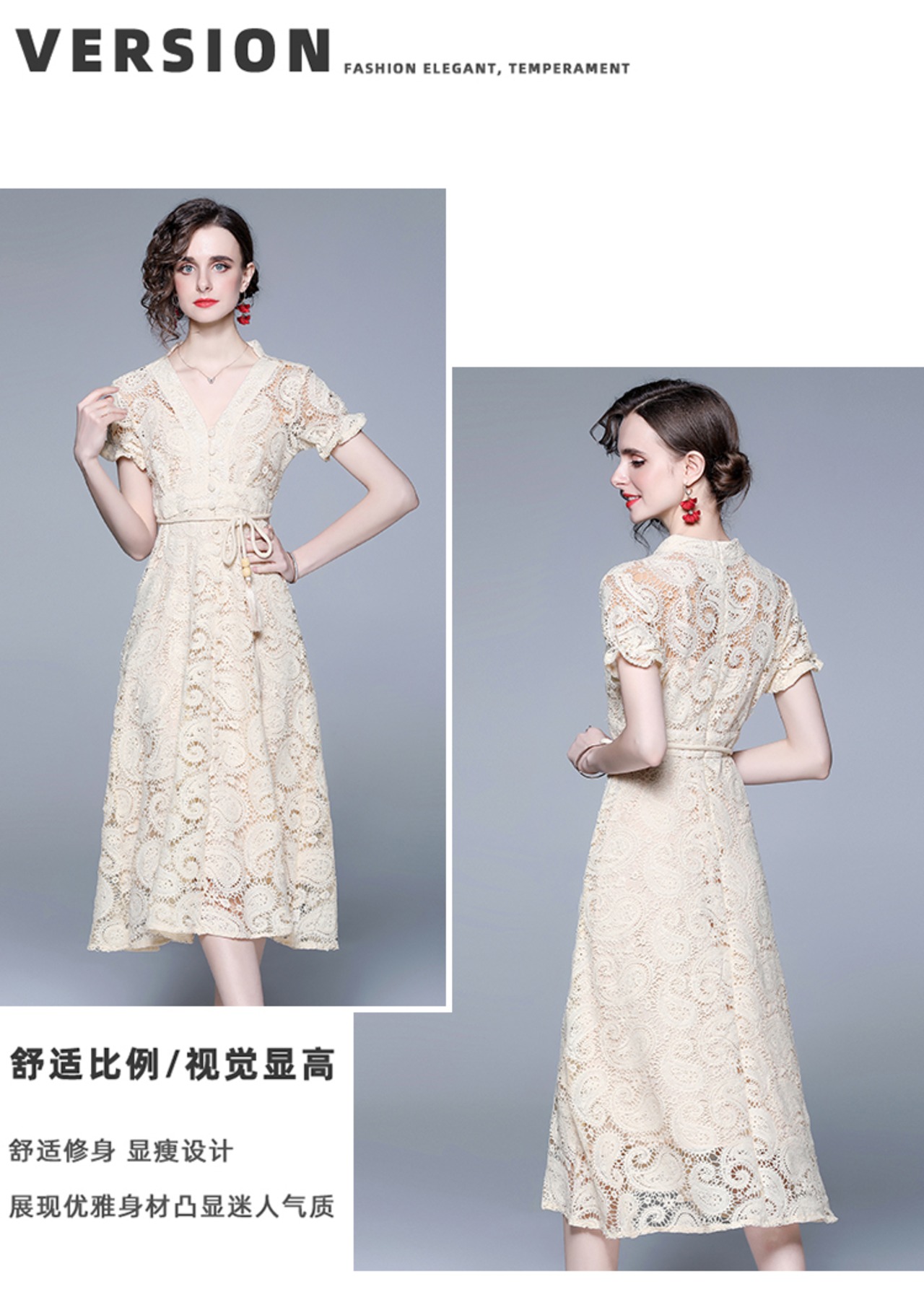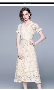 Discount store mall counters withdrawn women's clothing tail goods clearance hook flower hollow water soluble lace temperament slim dress レース スリム フラワーデザイン missry48822770741 | guttiy