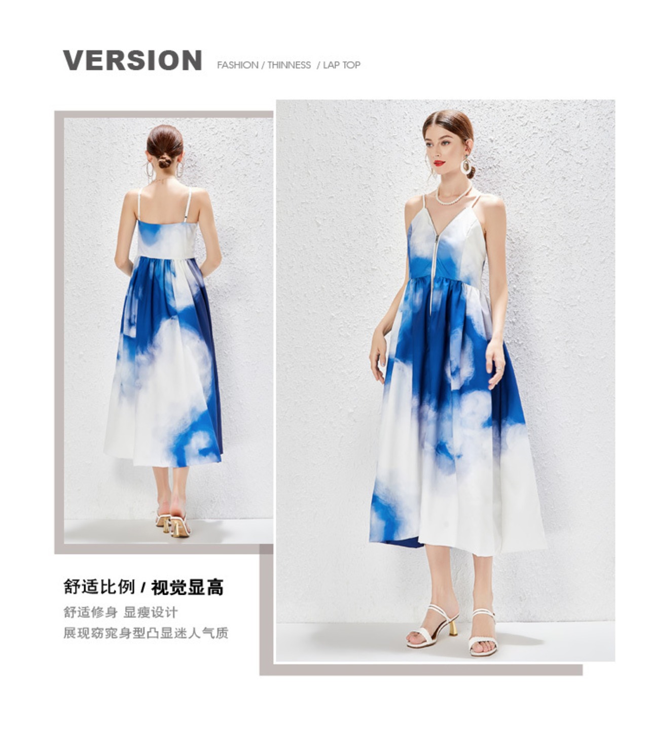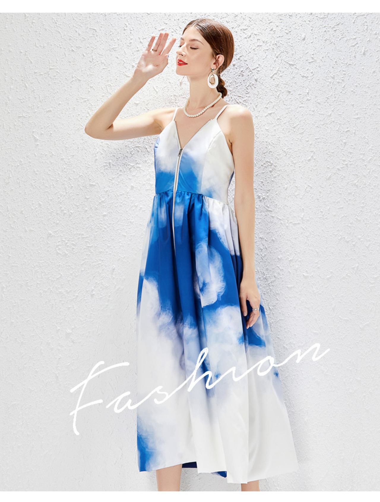 Discount store mall counters withdrawn women's clothing final clearance design tie-dye printing temperament suspender dress missry50039872926 | guttiy