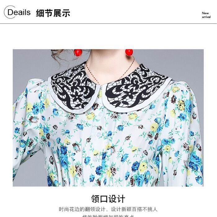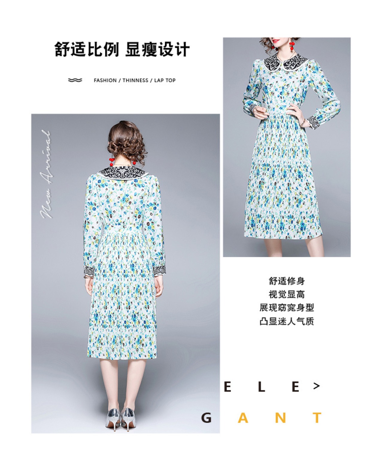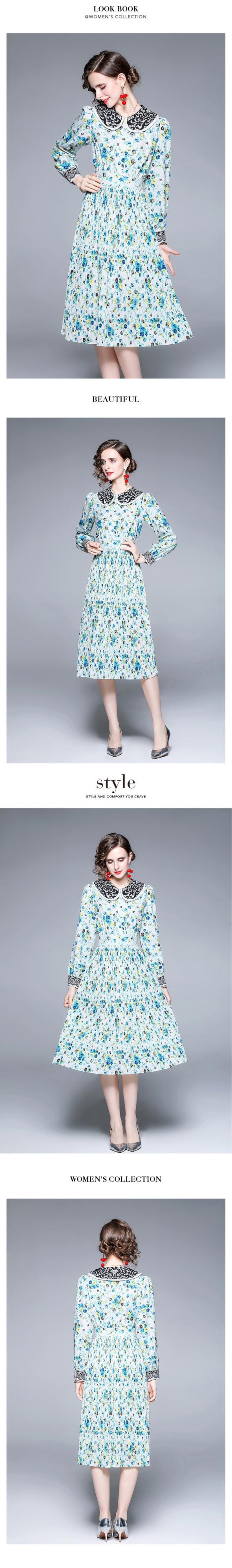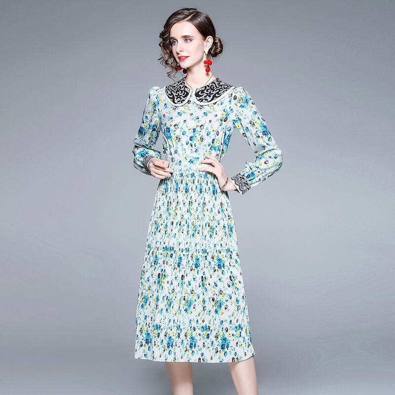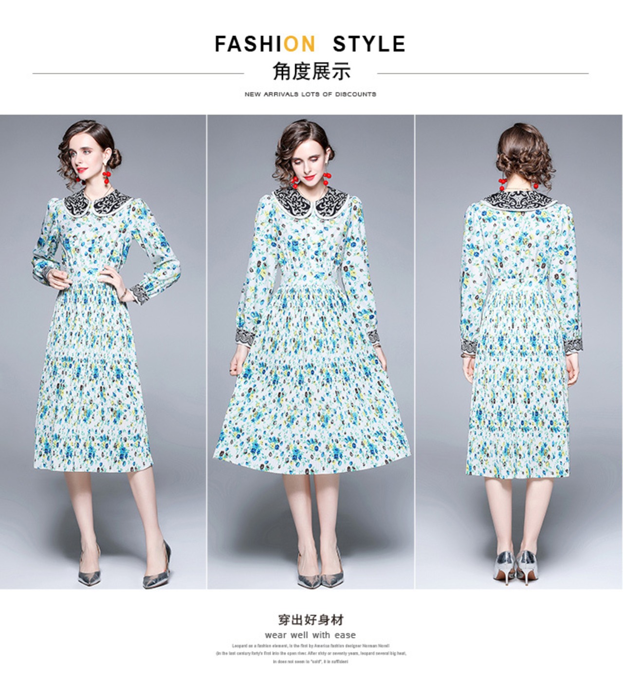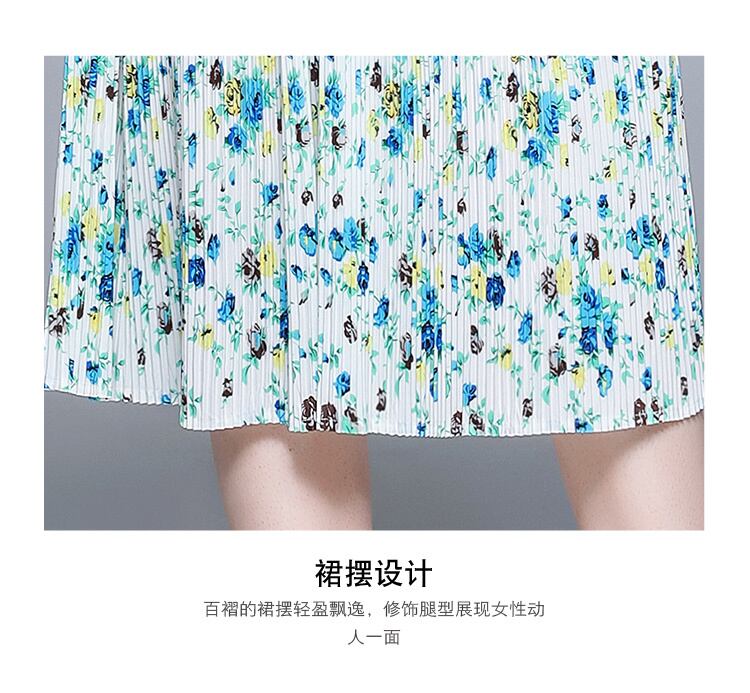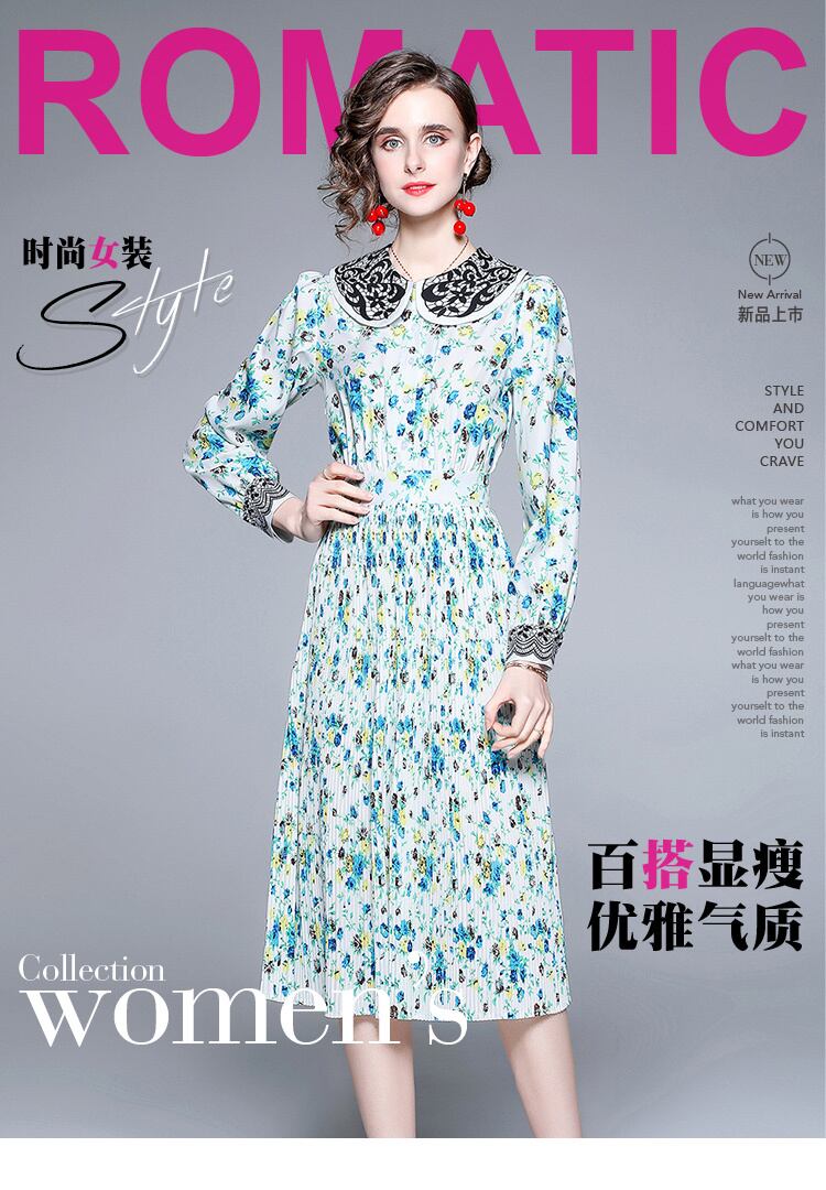 Discount store mall counter withdrawal women's clothing tail goods clearance temperament mid-length printed pleated dress プリント プリーツ missry5078807647 | guttiy