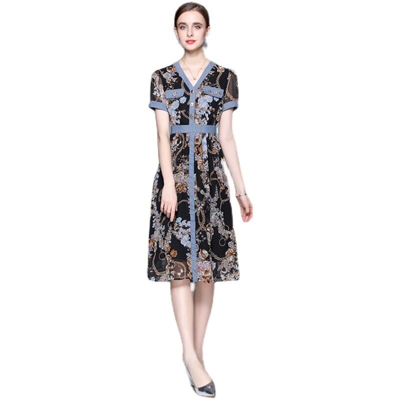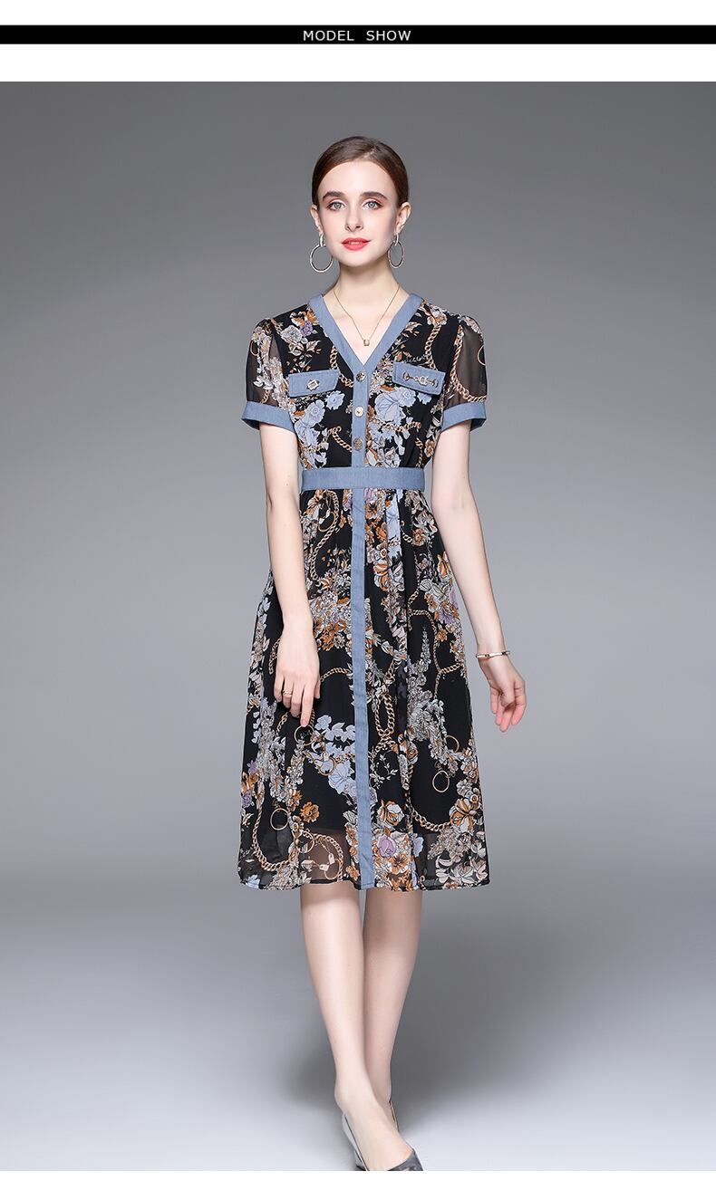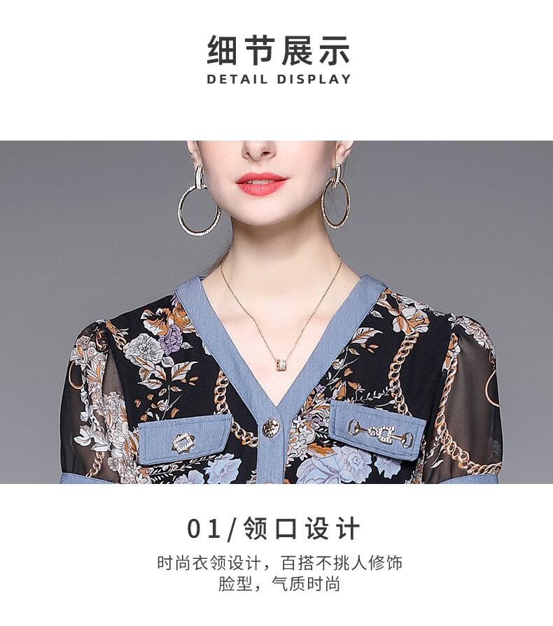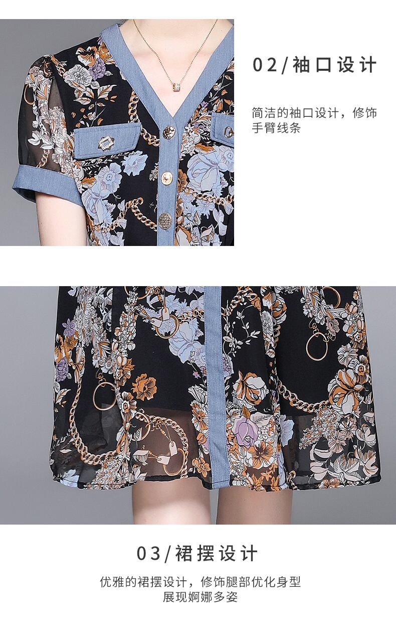 Discount store mall counters withdrawn women's clothing tail goods clearance age reduction thin chiffon stitching denim dress シフォン ステッチ missry98374129308 | guttiy