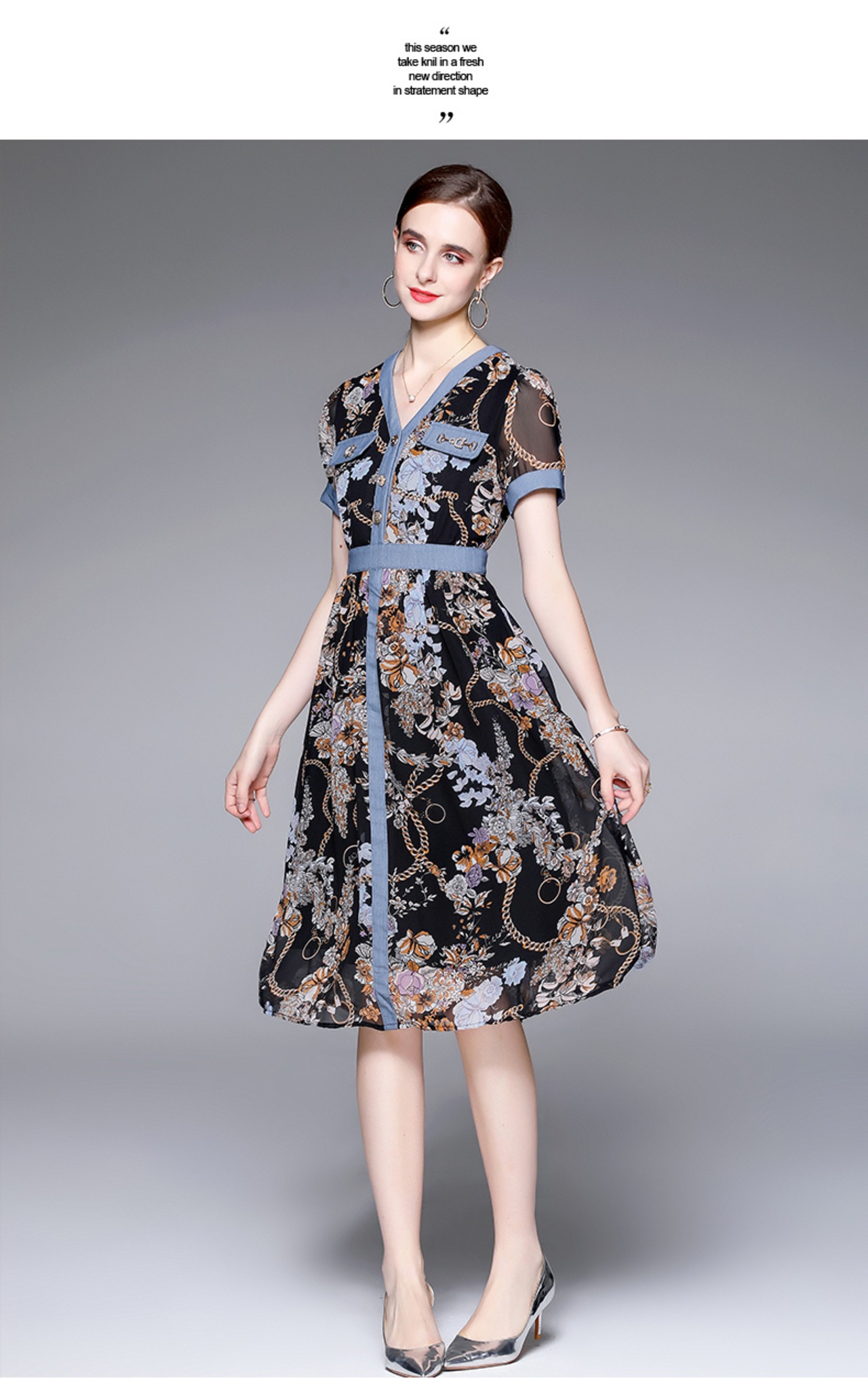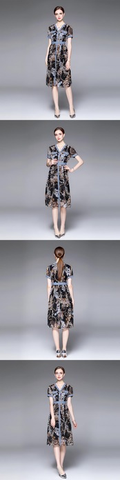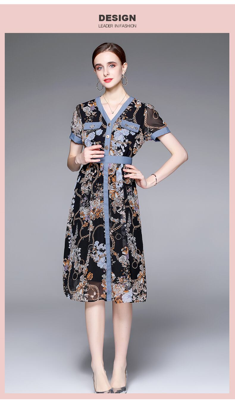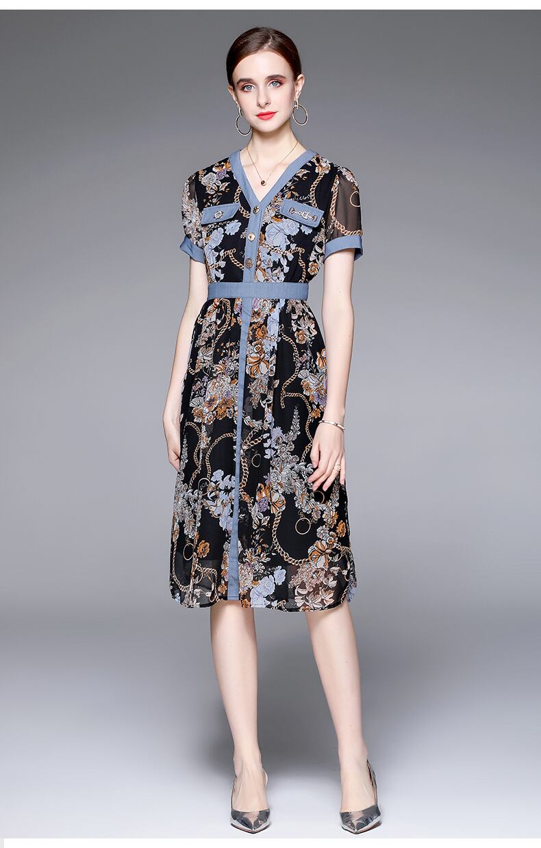 Discount store mall counters withdrawn women's clothing tail goods clearance age reduction thin chiffon stitching denim dress シフォン ステッチ missry98374129308 | guttiy