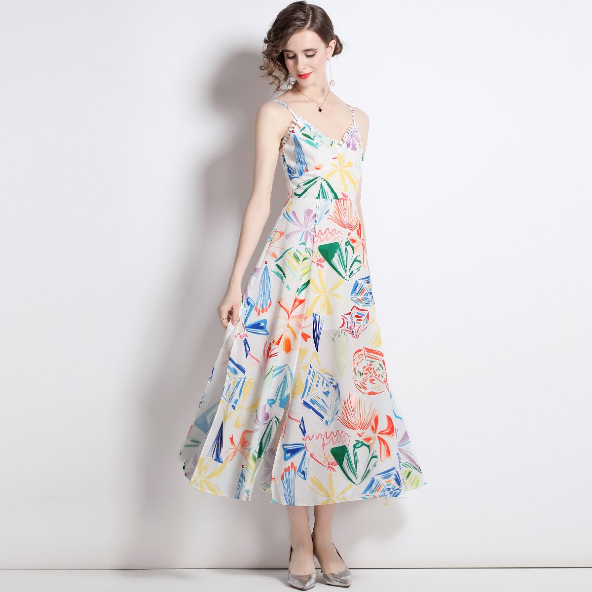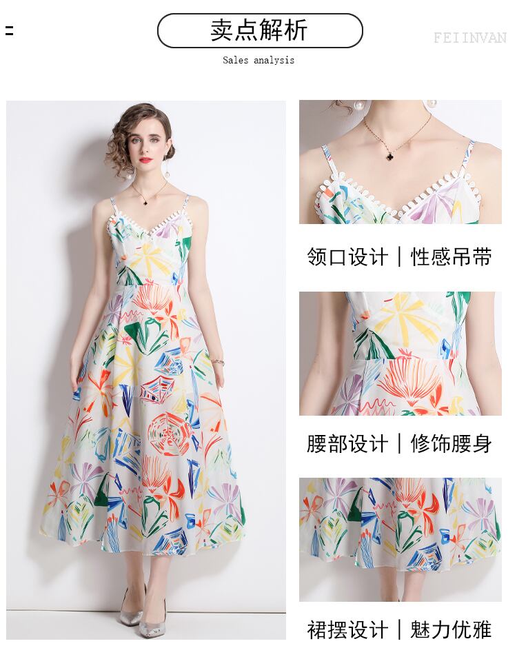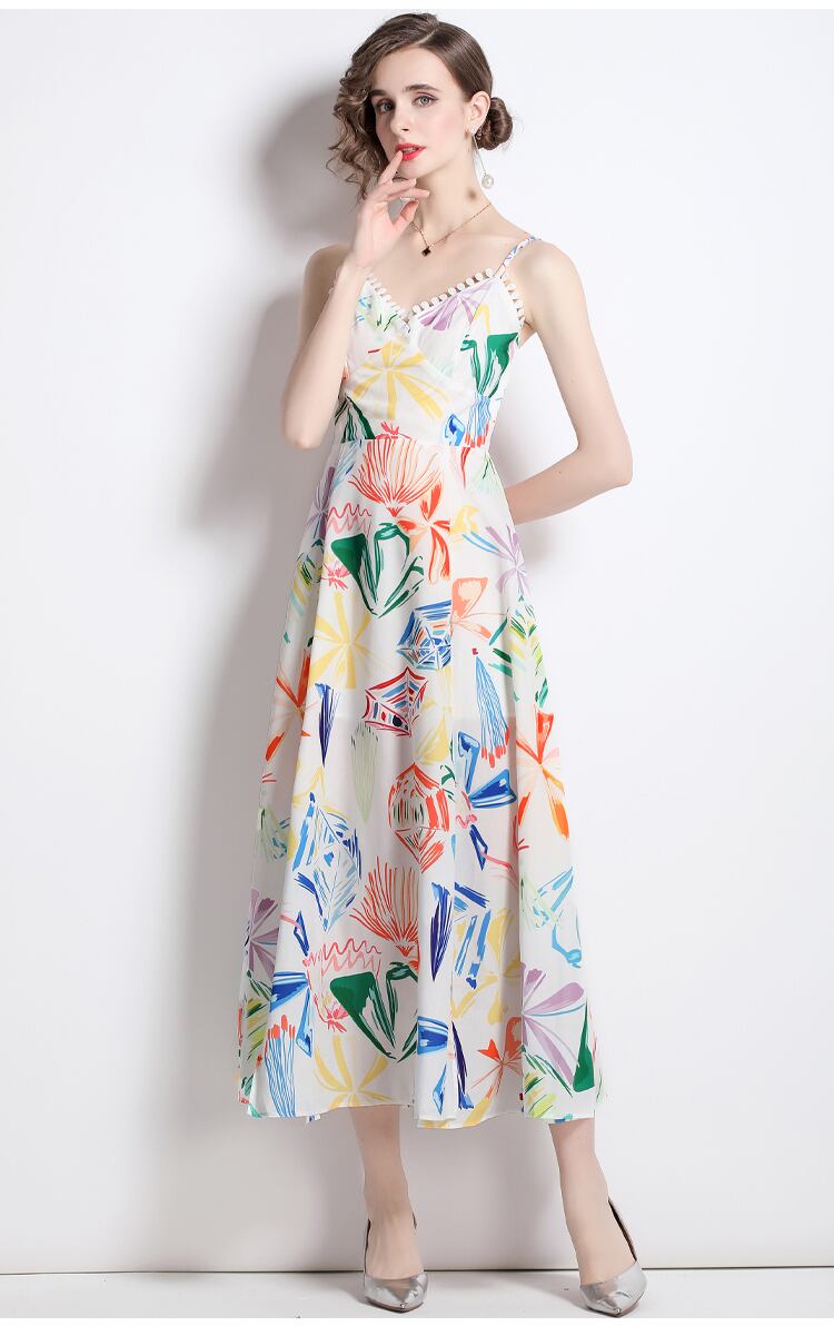 Discount Store Mall Counters Withdrawal Women's Clearance Sling Dress Waist Slit Print Long Dress ロング missry40435400230 | guttiy
