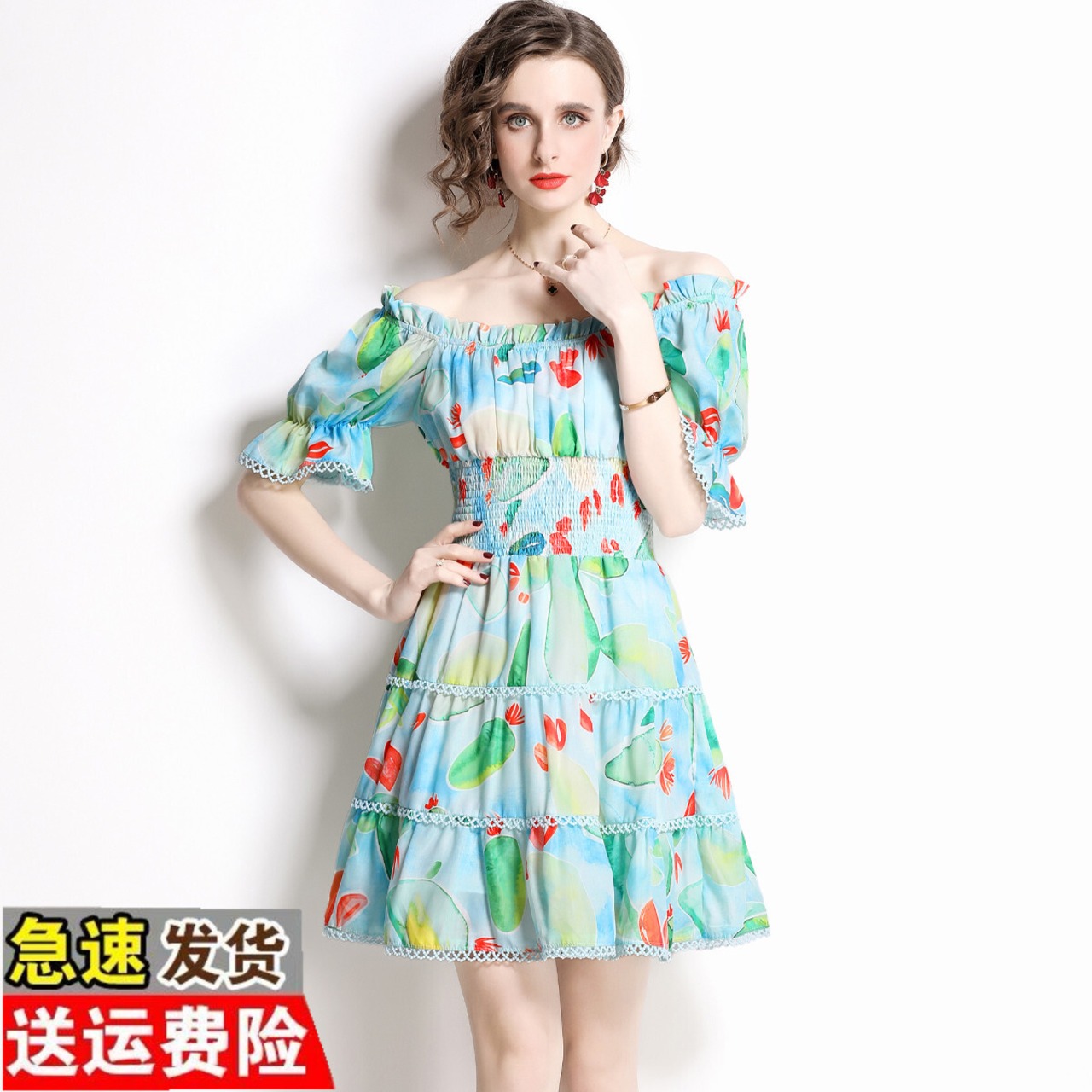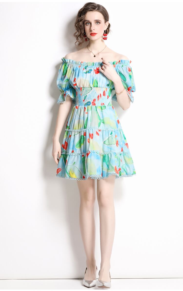 Discount store mall counters withdrawn women's clothing tail goods clearance show thin one-shoulder short-sleeved mid-length dress women missry26913213423 | guttiy