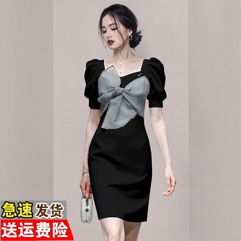 Discount store mall counters withdrawn women's clothing tail goods clearance bow waist waist slim puff sleeve dress リボン スリム missry90904756408 | guttiy