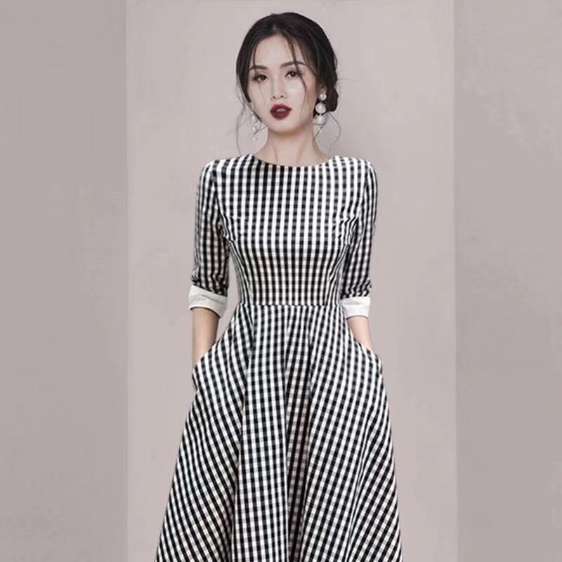 Discount store mall counters withdrawn women's clothing tail goods clearance summer clothing new stitching houndstooth short-sleeved dress サマー 夏物 ステッチ missry42939760538 | guttiy