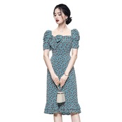 Discount store mall counters withdrawn women's clothing tail goods clearance retro waist ruffled slim floral dress レトロ 花柄 スリム missry67866965861 | guttiy