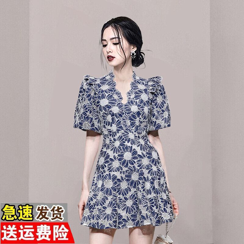 Discount store mall counters withdrawn women's clothing tail goods clearance close-up waist lotus leaf swing hollow sunflower embroidered dress レッド 刺繍 フラワーデザイン missry29593431636 | guttiy