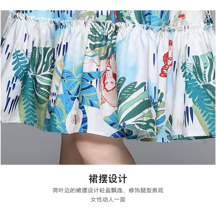 Discount store mall counter withdrawal women's clothing final clearance fashion French temperament V-neck printed dress プリント Vネック missry63962010144 | guttiy