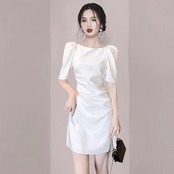 Discount Store Mall Counters Withdrawal Women's Ends Clearance Sweet and Spicy Temperament Slim Puff Sleeves White Short Skirts ショート ホワイト 大人ガーリー スウィート キュート カジュアル スカート スリム missry94168125842 | guttiy