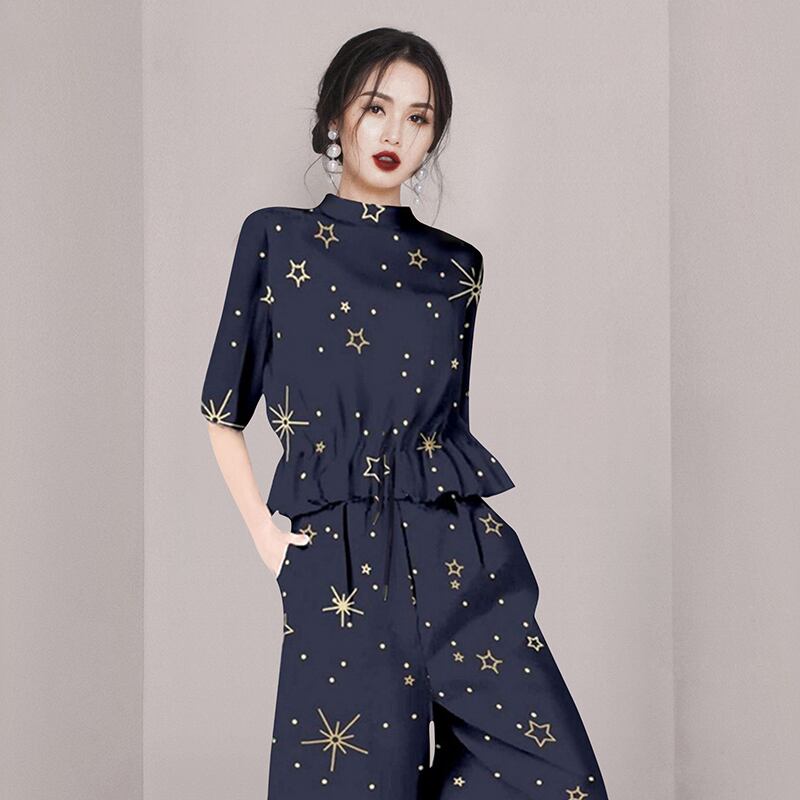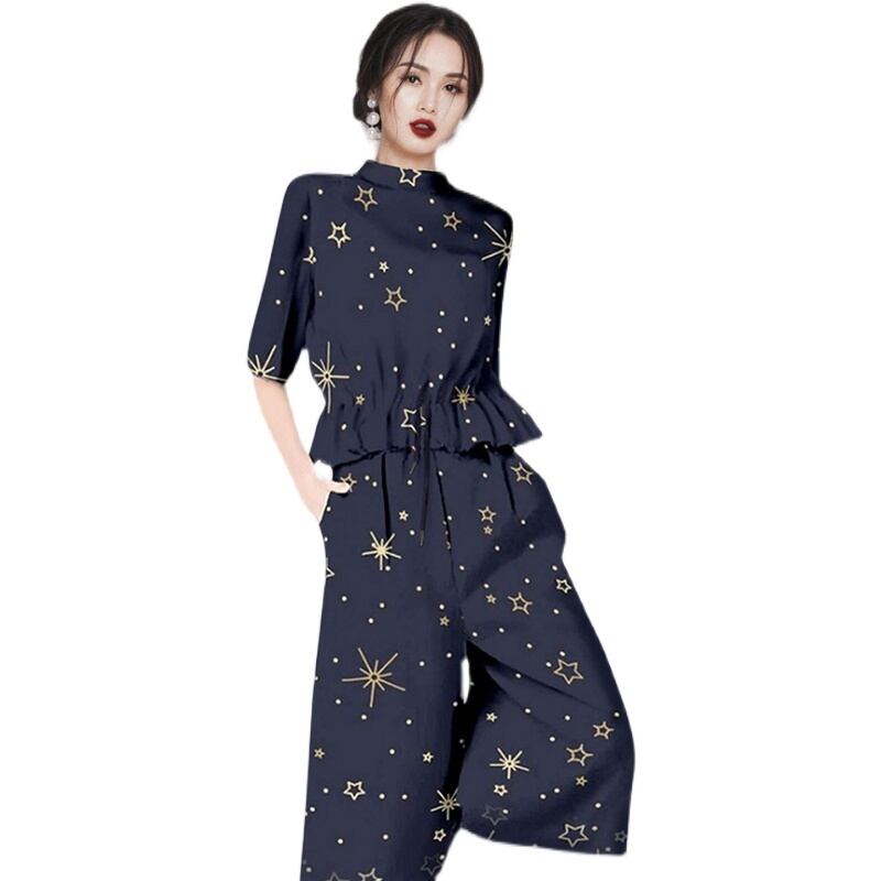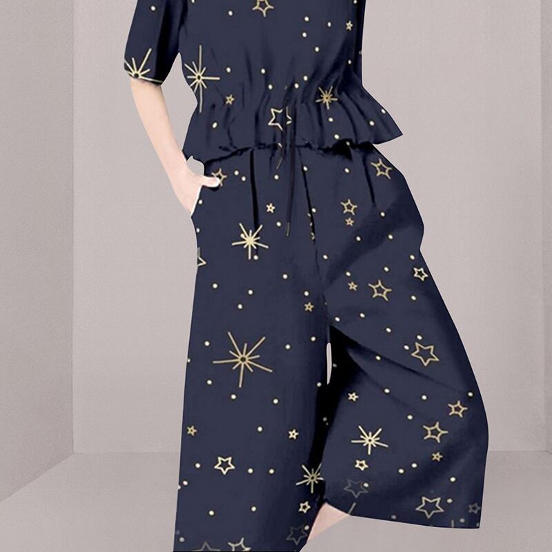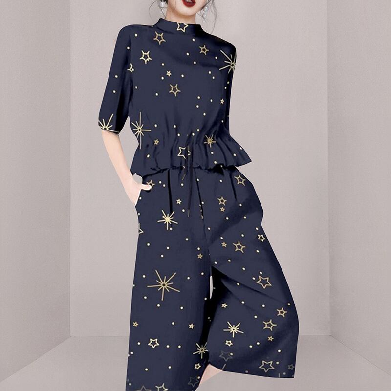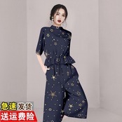 Discount Store Mall Counters Withdrawal Women's Tail Clearance Warehouse Covering Belly Printing Waist Tops Wide Leg Pants Two-Piece Set ワイドレッグ ワイドパンツ missry71420776499 | guttiy