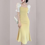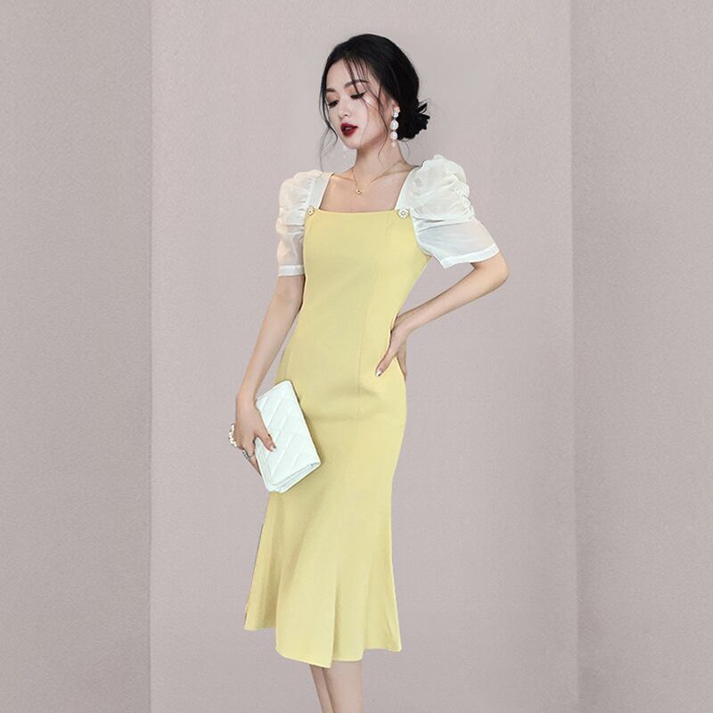 Discount store mall counter withdrawal women's clothing tail goods clearance square collar puff sleeves temperament slim fishtail skirt スカート スリム スクウェア missry10202135609 | guttiy