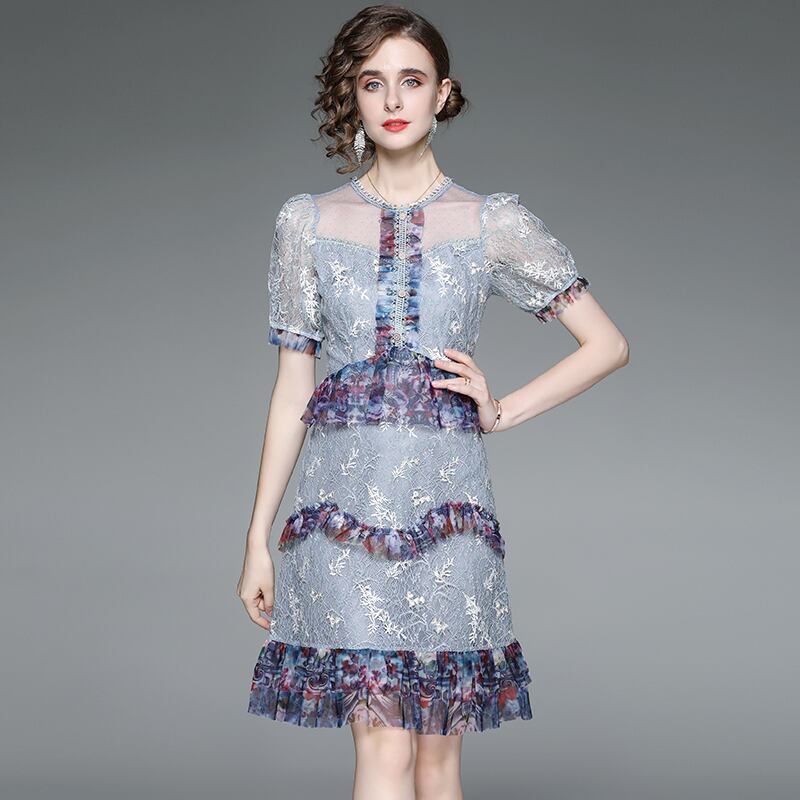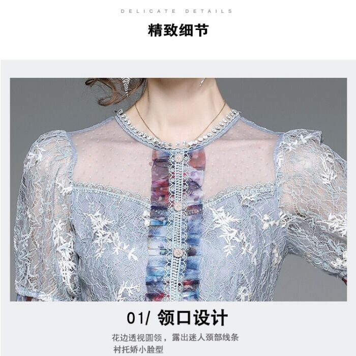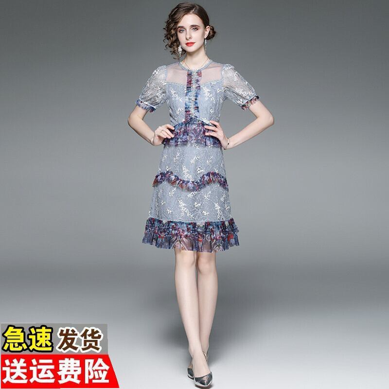 Discount store mall counters withdrawn women's clothing tail goods clearance printing lotus leaf lace heavy industry embroidery temperament jumpsuit レース 刺繍 missry69102504067 | guttiy