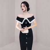 Discount store mall counters withdrawn women's clothing tail goods clearance new one-word collar waist slimming hip skirt スカート missry34211000860 | guttiy