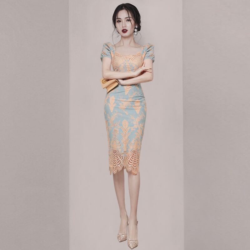 Discount Store Mall Counters Withdrawal Women's Clearance Temperament French Split Puff Sleeves Lace Dress レース missry64708636401 | guttiy