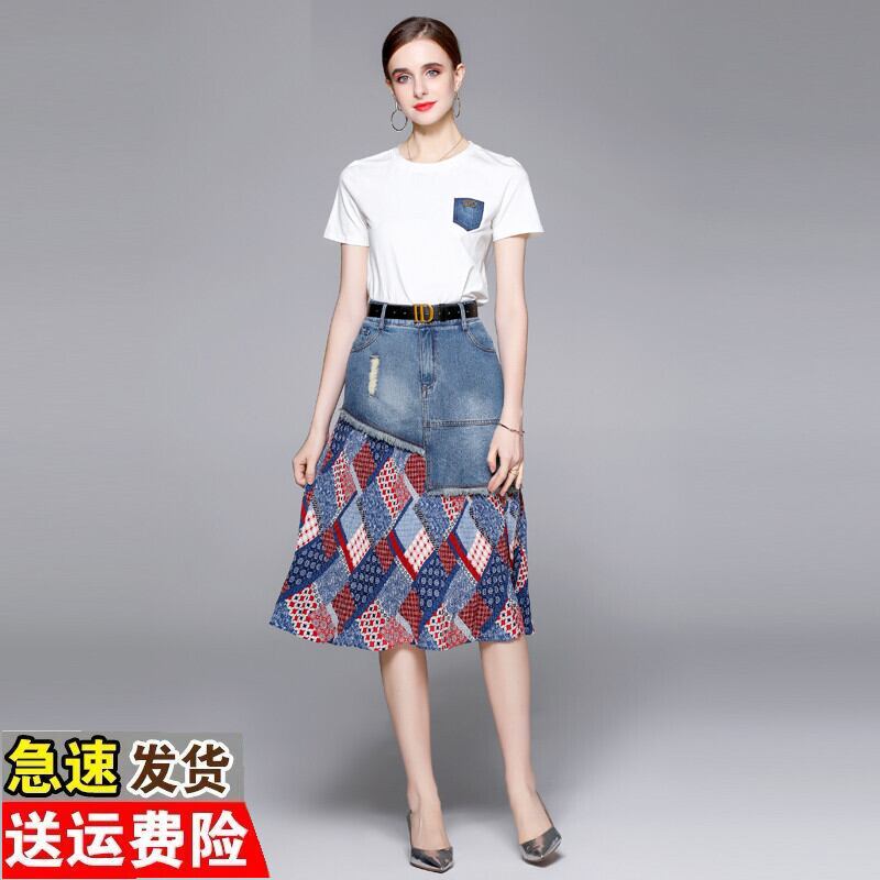 Discount store mall counter withdrawal women's clothing tail goods clearance suit Hong Kong flavor T-shirt temperament fashion denim two-piece set Tシャツ missry47355805935 | guttiy