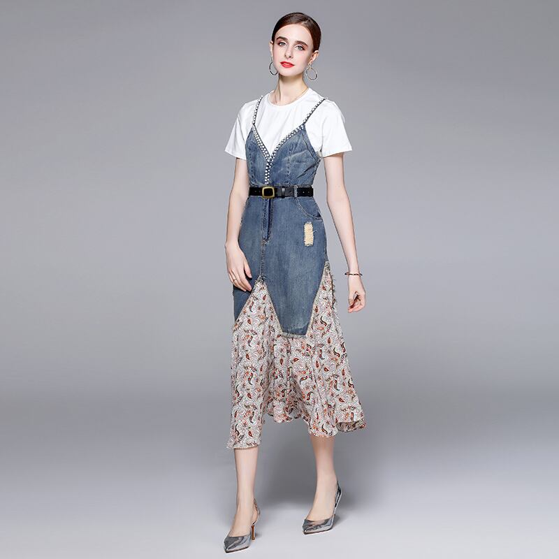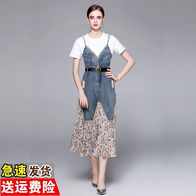 Discount Store Mall Counters Withdrawal Women's Tail Clearance Splicing Denim Sling Skirts Two Piece Dresses ドレス スカート missry13697360394 | guttiy