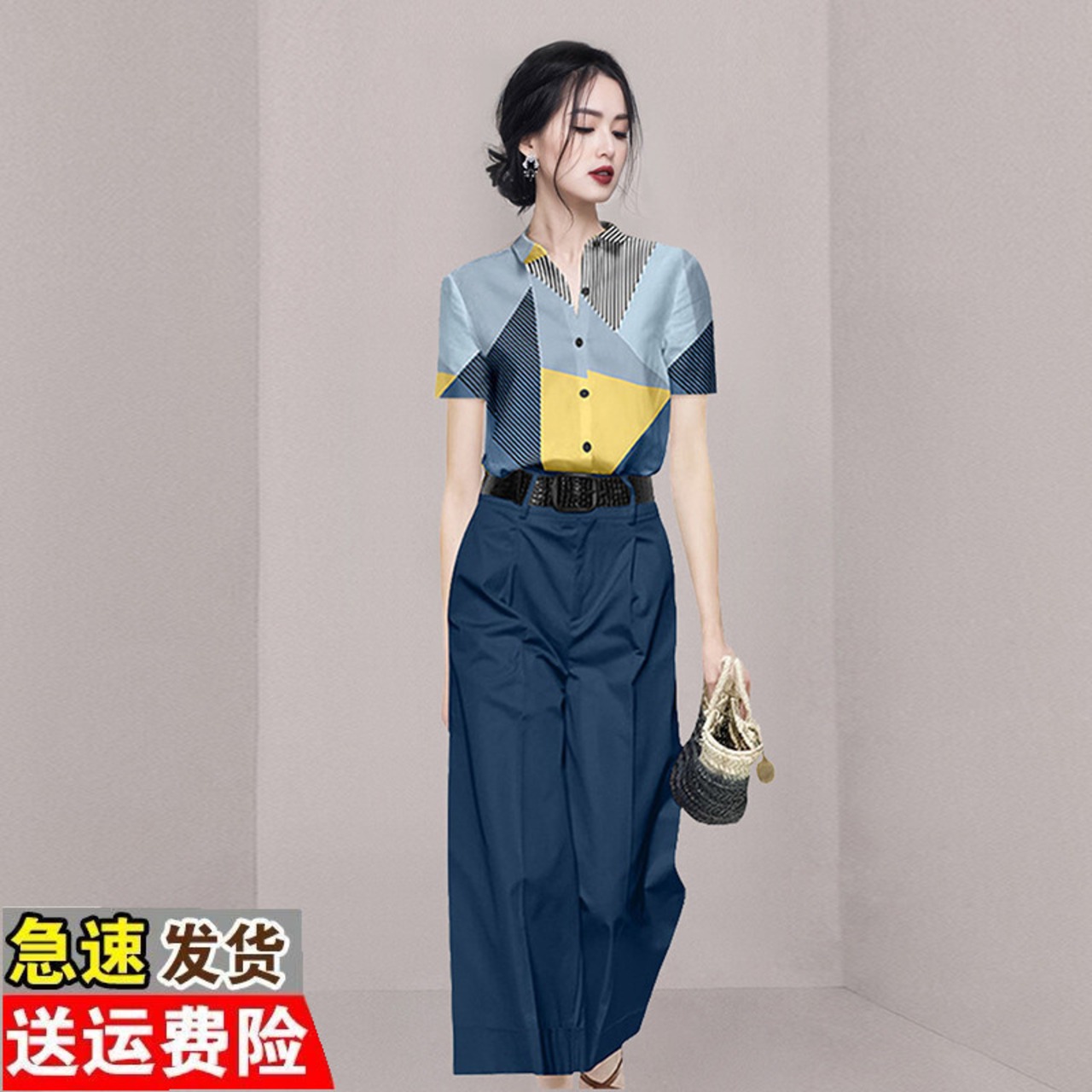 Discount store mall counters withdrawn women's clothing tail goods clearance stunning short-sleeved trousers wide-leg pants high-waisted commuter suit missry3571494763 | guttiy