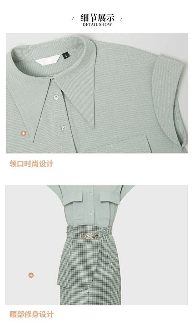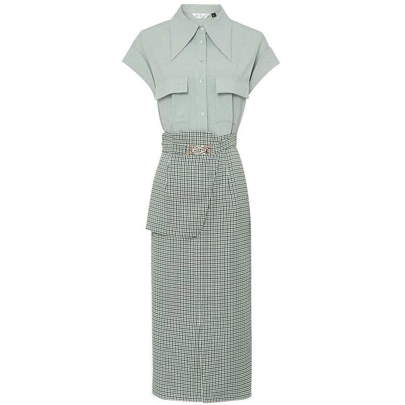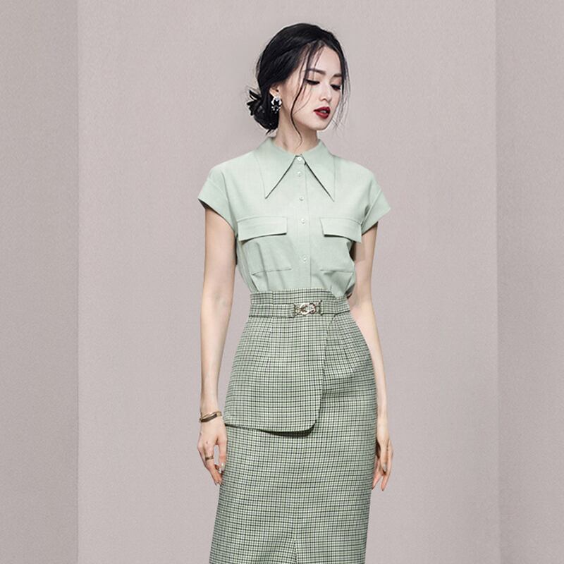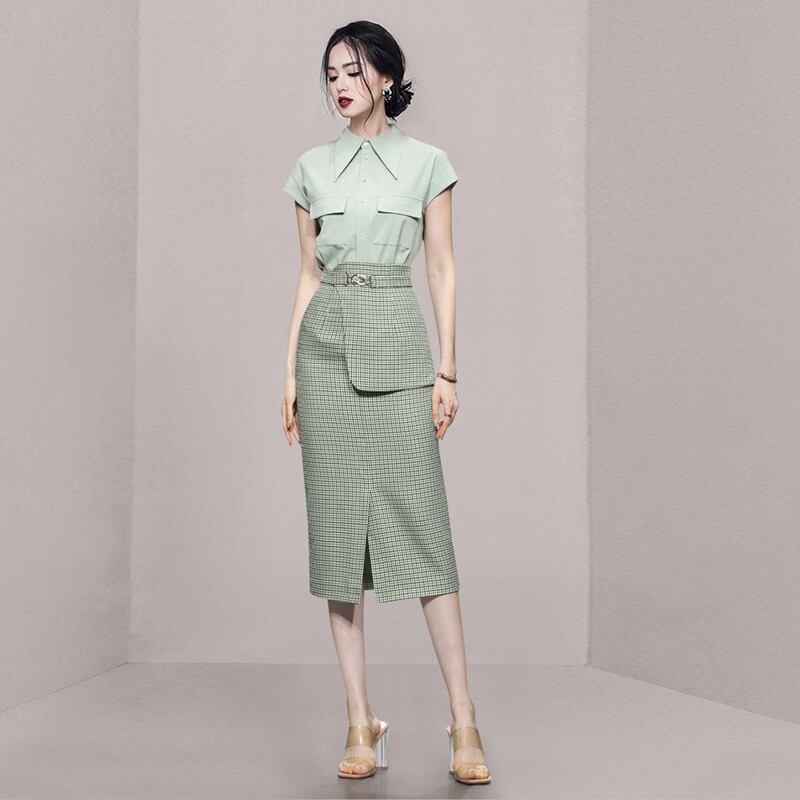 Discount Store Mall Counter Withdrawal Women's Clearance Shirt + Green Plaid Girdle Slim Fit Skirt Suit スカート スリム グリーン missry96601897798 | guttiy
