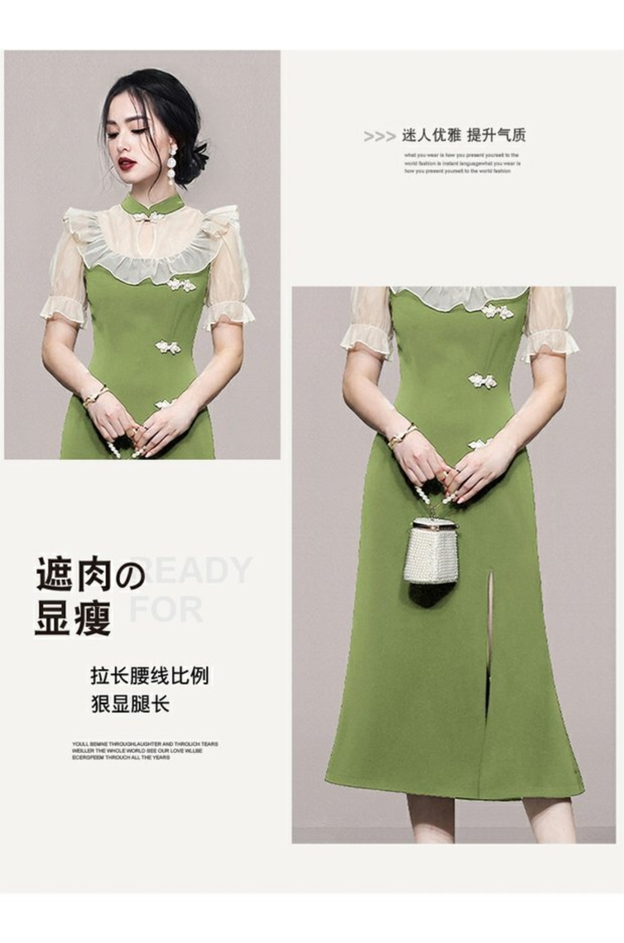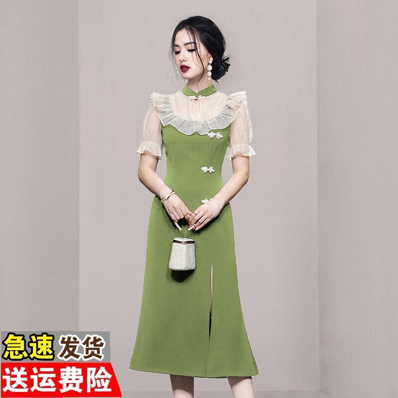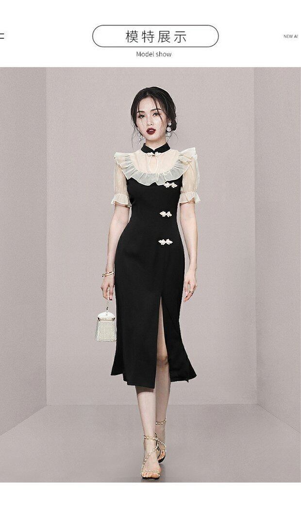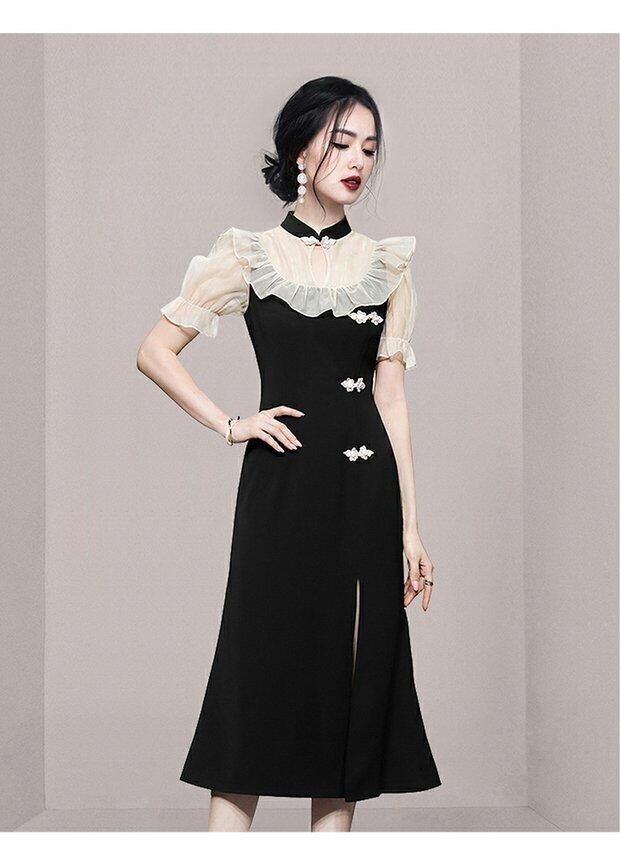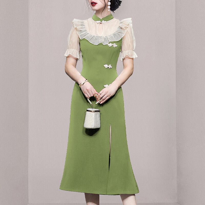 Discount store mall counters withdrawn women's clothing tail goods clearance puff sleeves elegant retro modified cheongsam dress レトロ エレガント missry78034697894 | guttiy