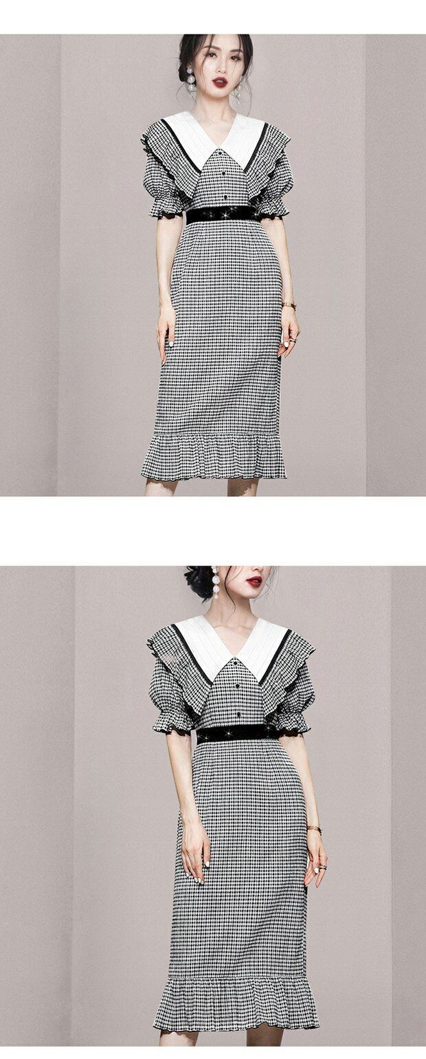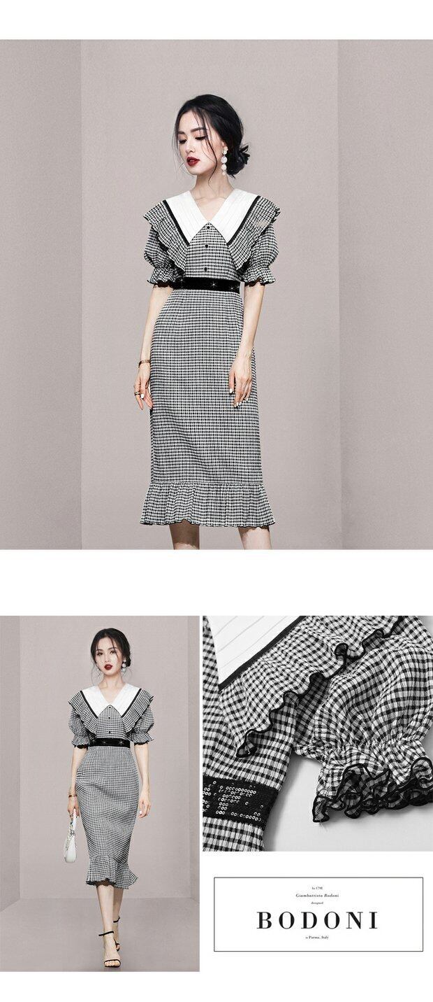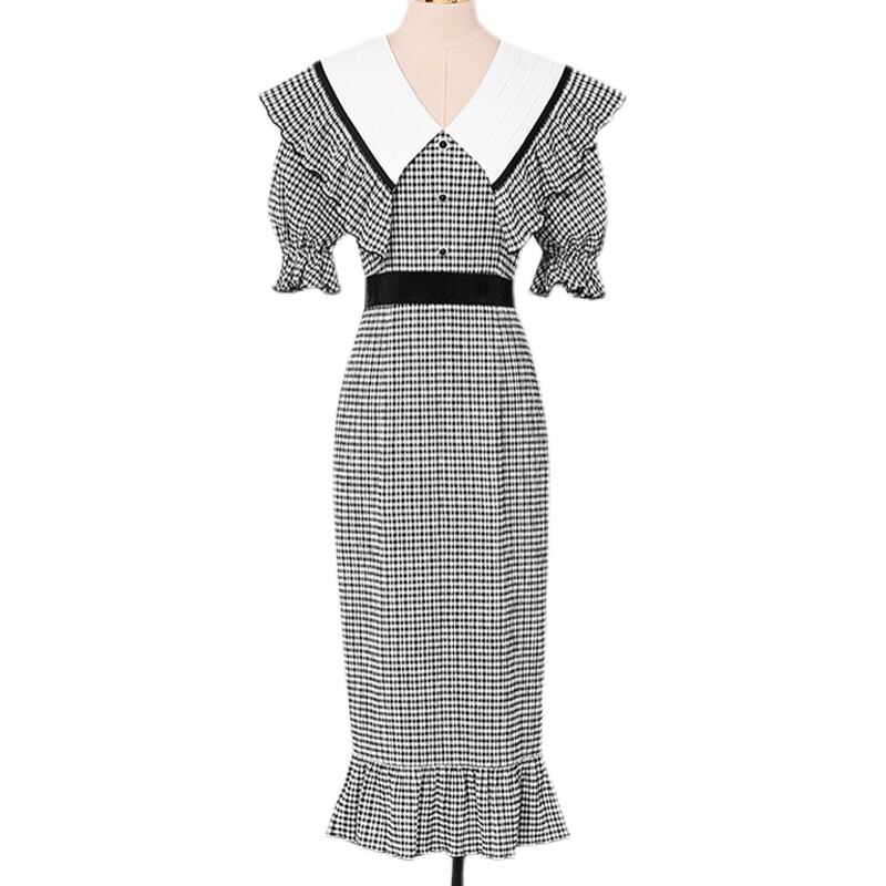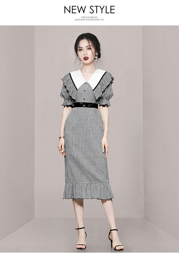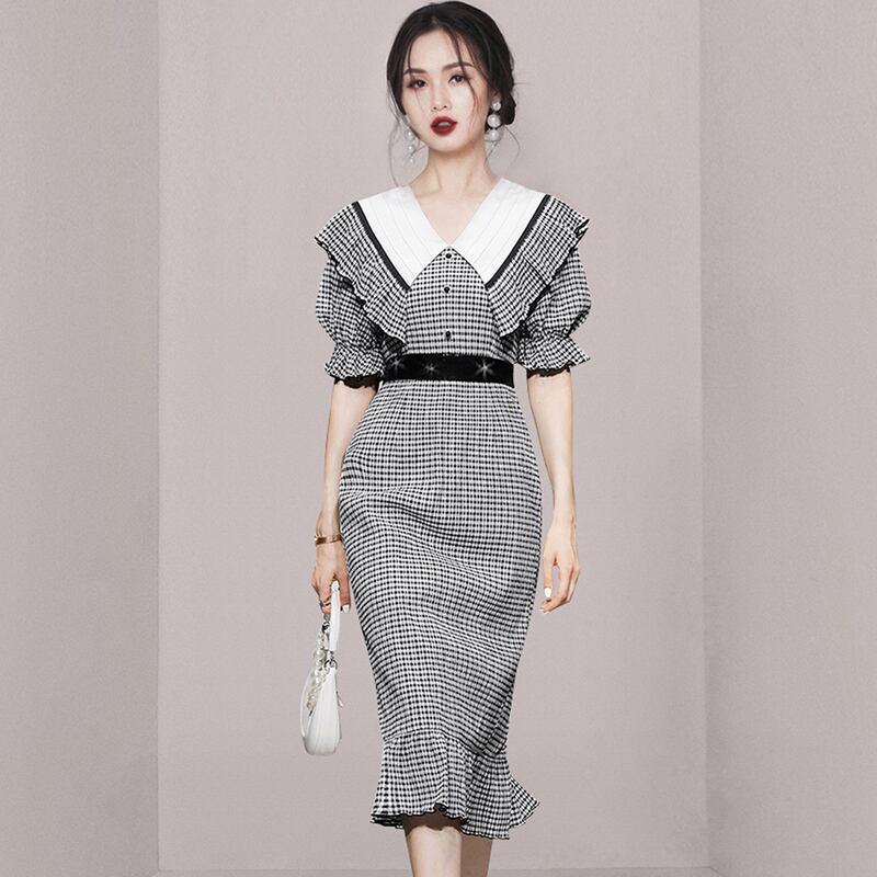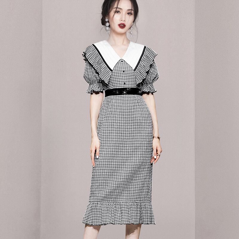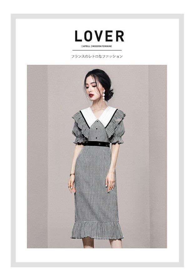 Discount store mall counter withdrawal women's clothing tail goods clearance fight to receive waist plaid long skirt fishtail dress women ロング スカート missry38206428291 | guttiy