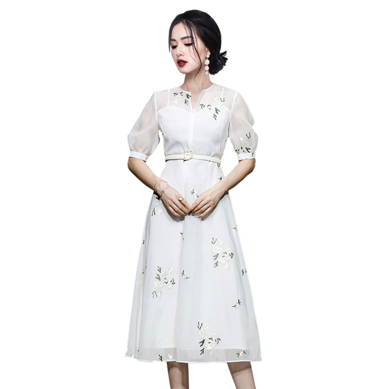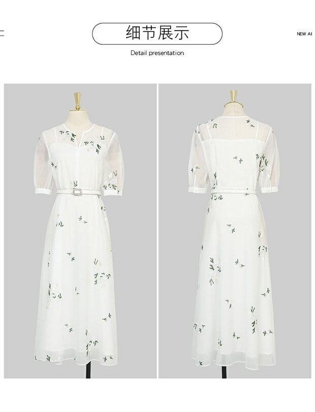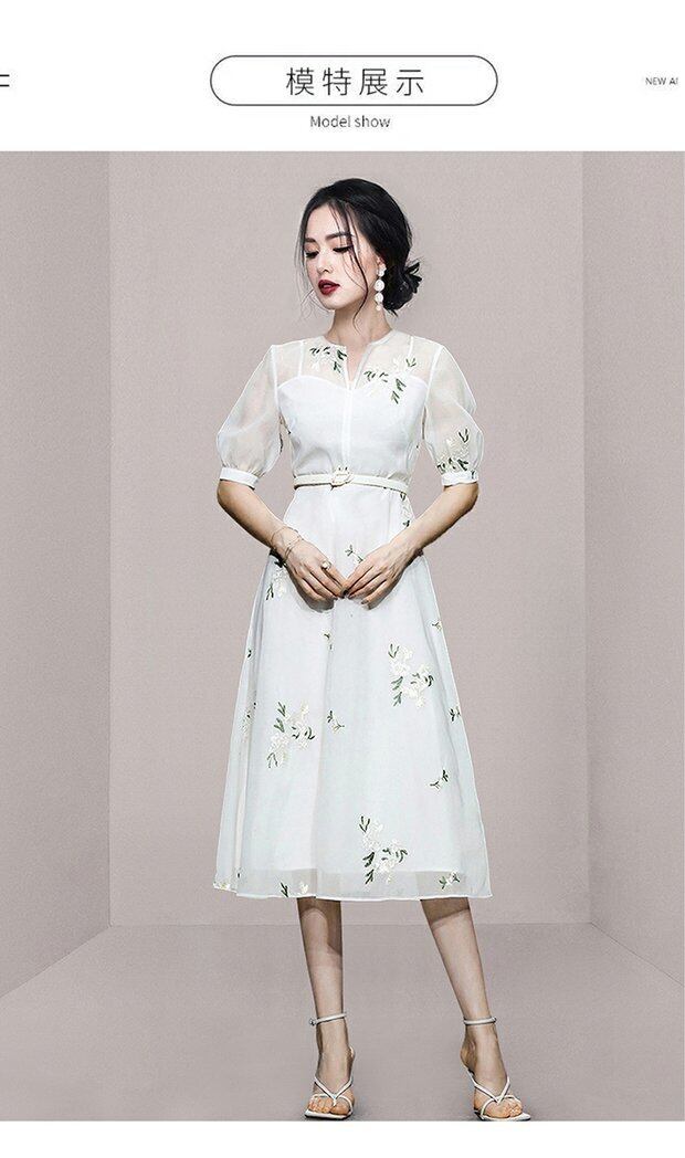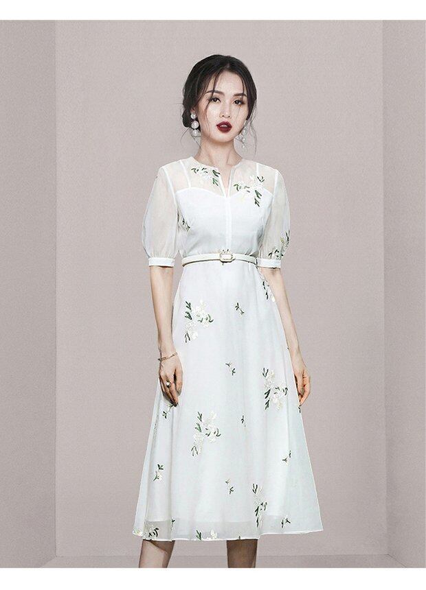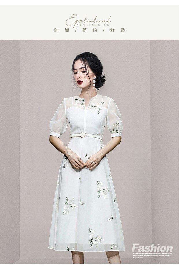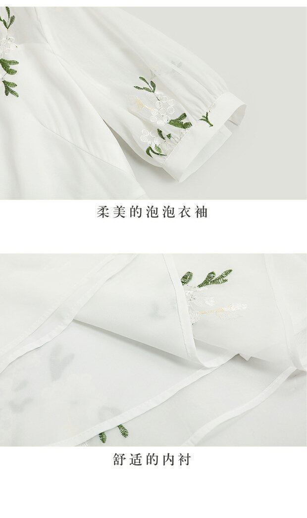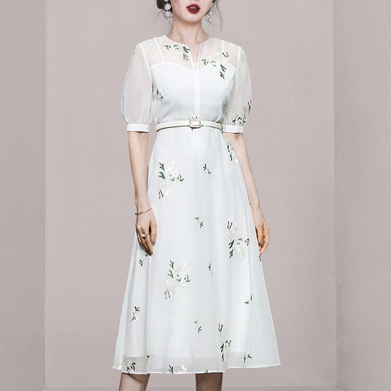 Discount Store Mall Counters Withdrawal Women's Ends Clearance Warehouse Waist Thin Puff Sleeves V-Neck Embroidered Dress レッド 刺繍 Vネック missry74456682549 | guttiy