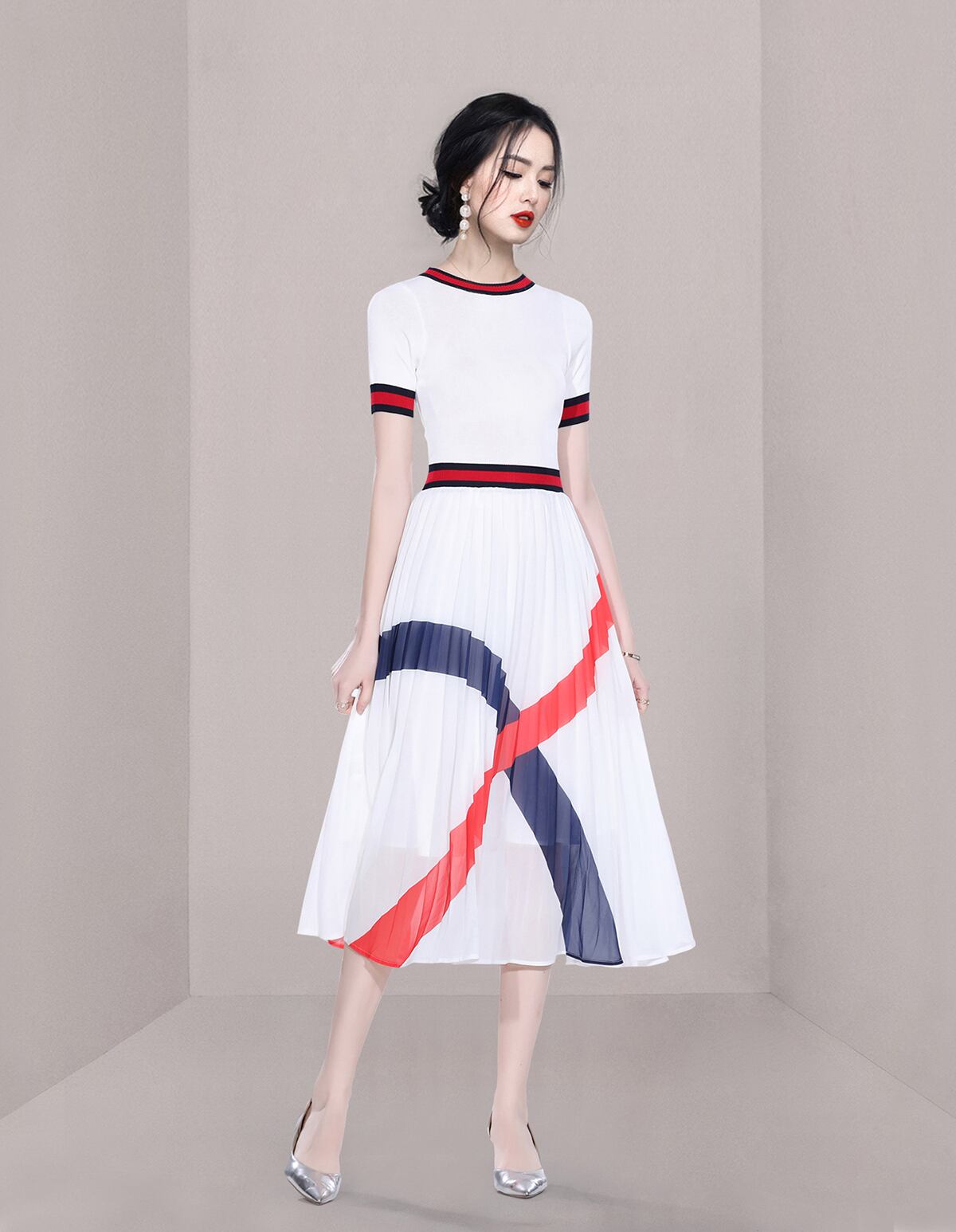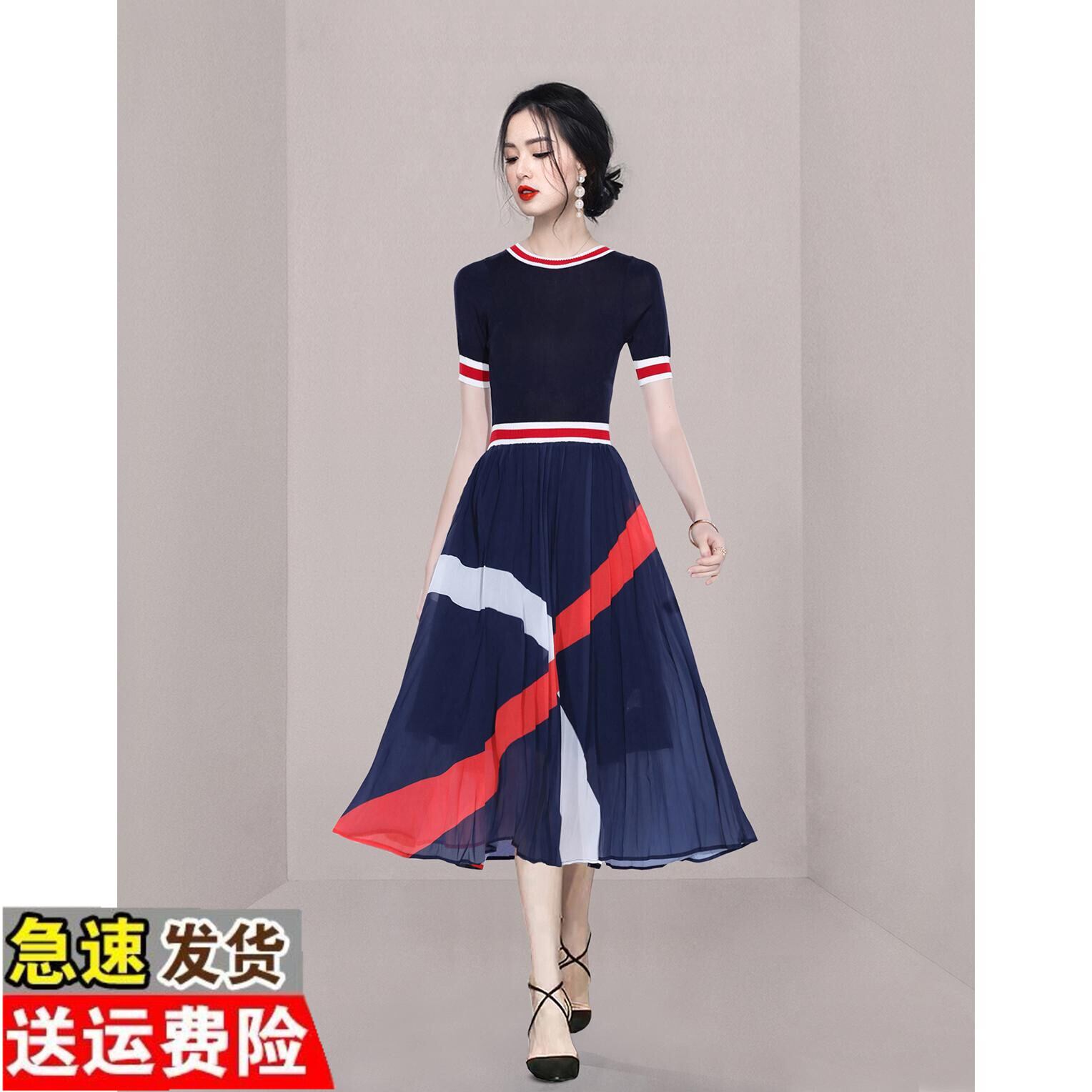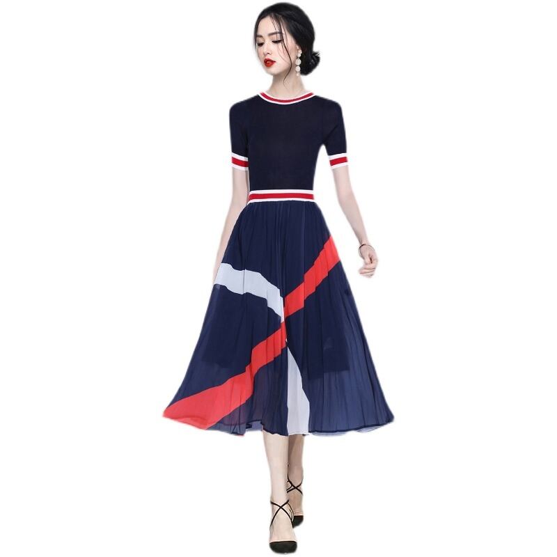 Discount store mall counter withdrawal women's clothing tail goods clearance stitching geometric chiffon print large swing dress シフォン ステッチ missry88749495627 | guttiy