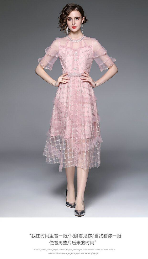 Discount store mall counters withdrawn women's clothing tail goods clearance show thin pink fairy skirt gold thread embroidery dress ピンク 刺繍 スカート missry9687045747