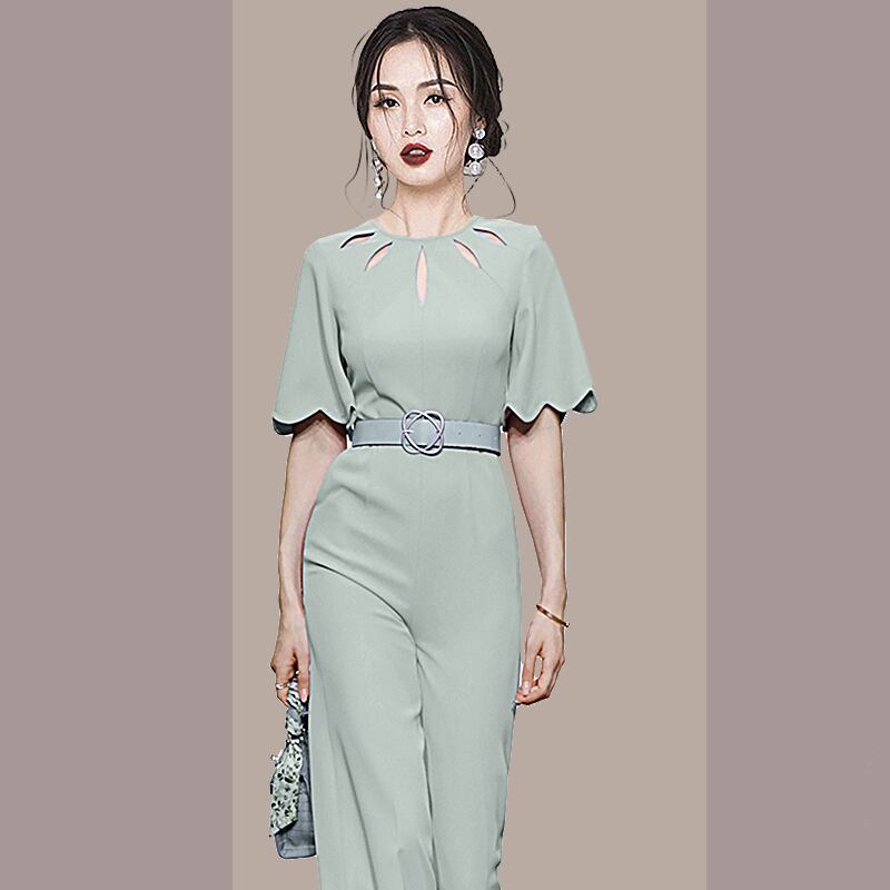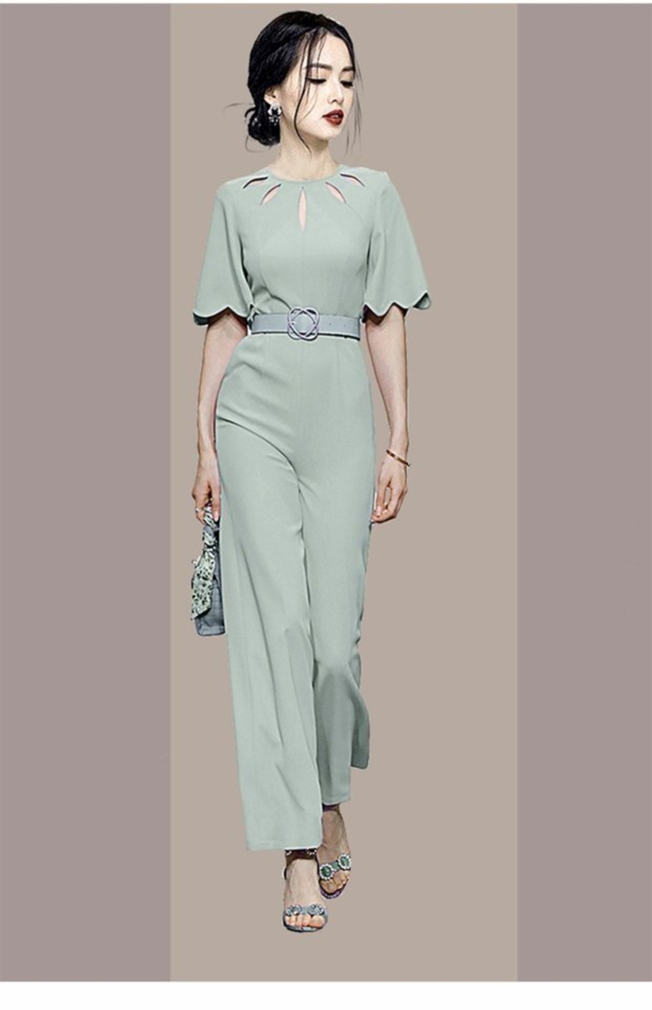 Discount store mall counters withdrawn women's clothing tail goods clearance hollow petals short-sleeved high-waisted slim-fit wide-leg jumpsuit missry73733028010 | guttiy