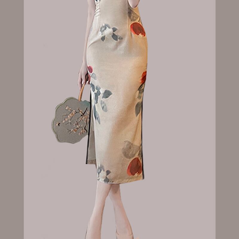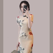 Discount store mall counters withdrawn women's clothing tail goods clearance design sense of slim fit and thin temperament floral dress 花柄 スリム missry51873245840 | guttiy