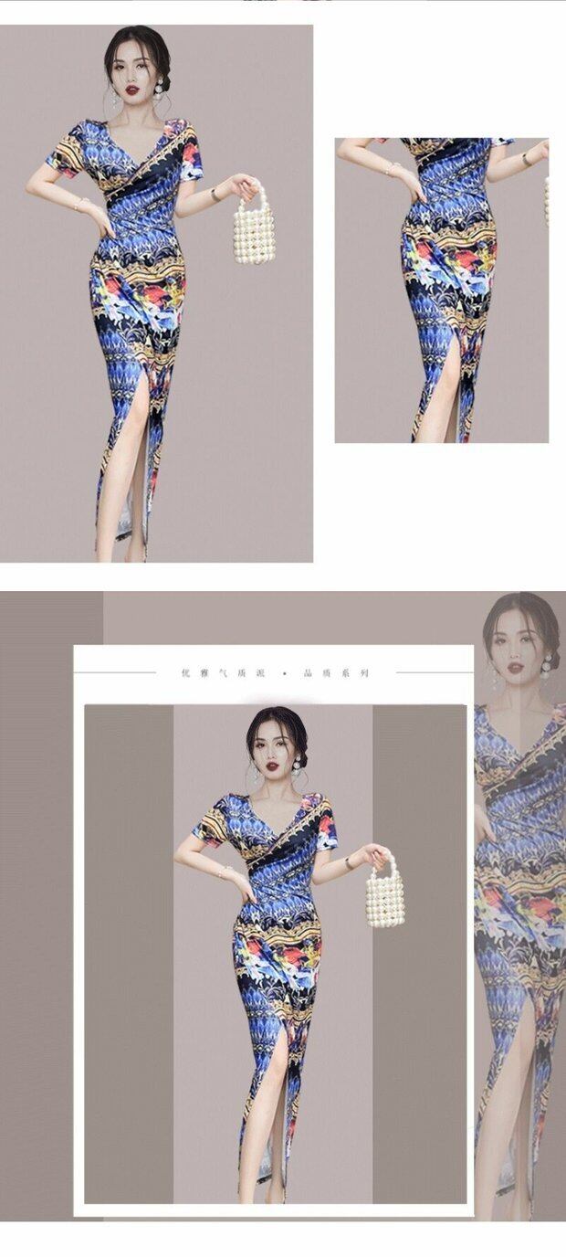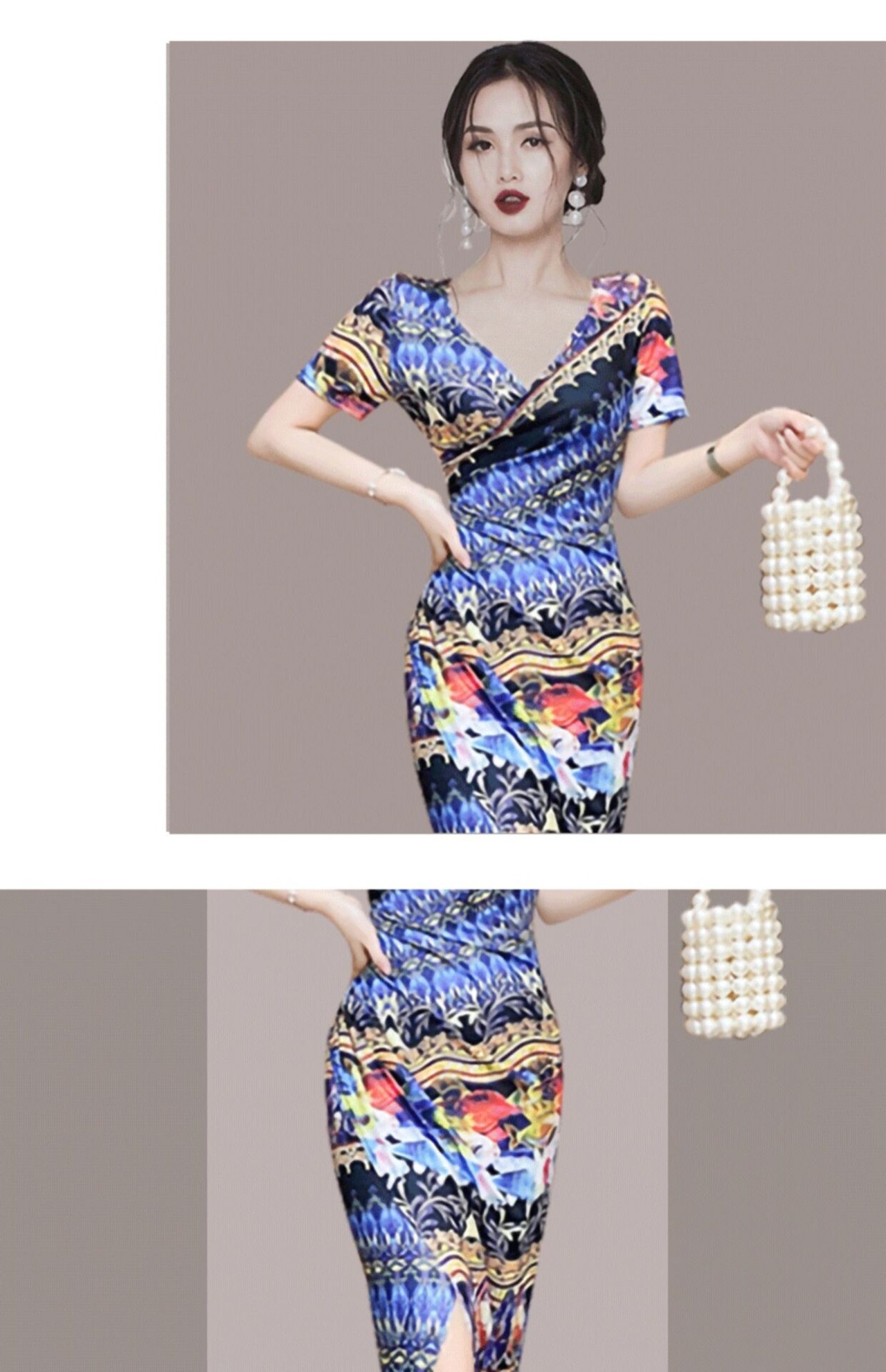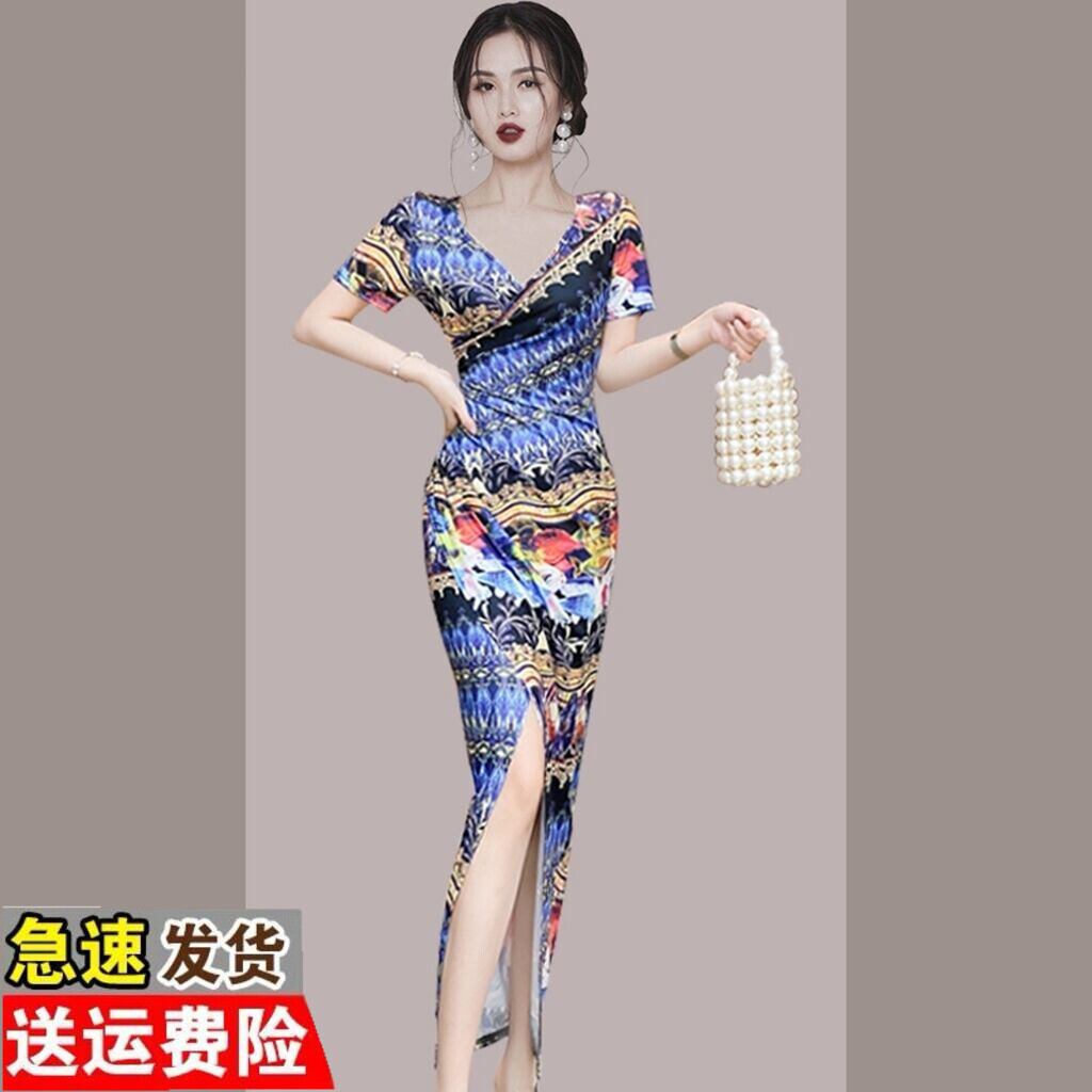 Discount Store Mall Counters Withdrawal Women's Clothes Clearance Short Sleeve V-Neck Temperament Slim Fit Hips Slit Long Skirt ショート ロング 半袖 ハーフスリーブ スカート Vネック スリム missry75088660178 | guttiy
