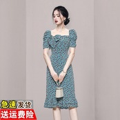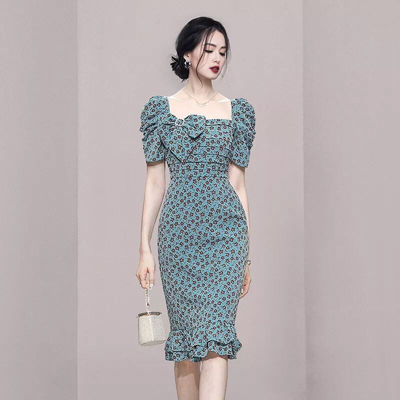 Discount store mall counters withdrawn women's clothing tail stock clearance lotus leaf edge slim fashion thin floral dress 花柄 スリム missry79322997940 | guttiy