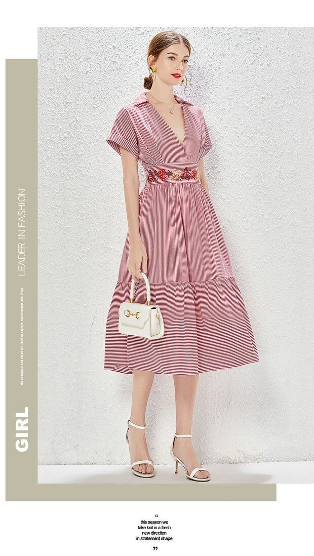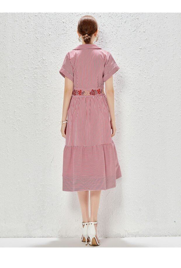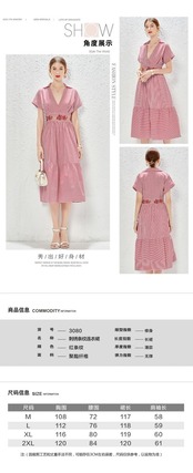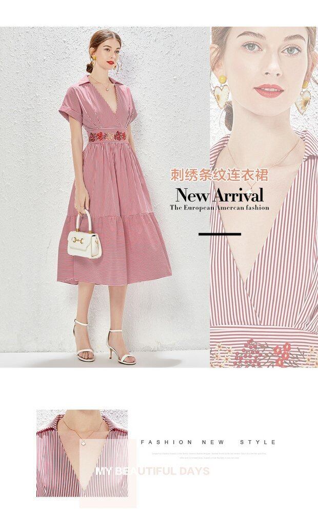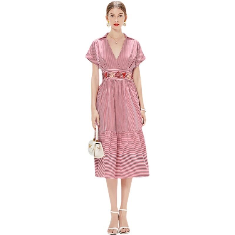 Discount store mall counter withdrawal women's clothing tail goods clearance with the same waist red striped embroidered dress レッド 刺繍 ストライプ missry31995952291 | guttiy