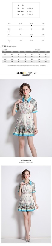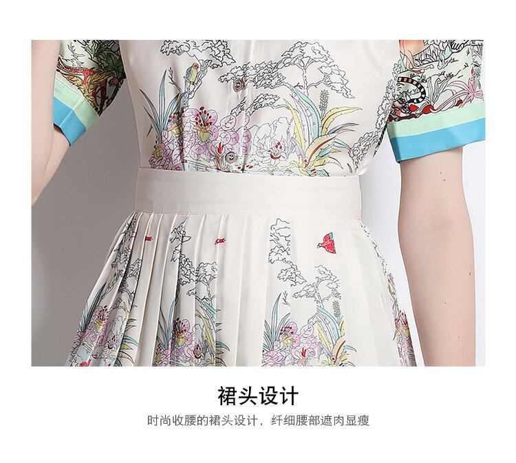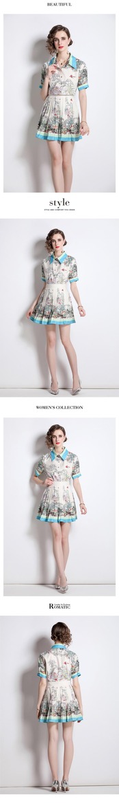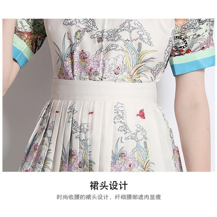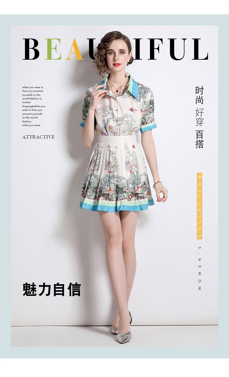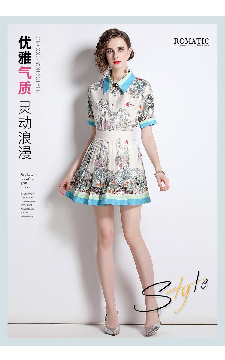 Discount store mall counters withdrawn women's clothing tail goods clearance temperament short-sleeved printed shirt pleated skirt suit プリント プリーツ スカート missry32149435707 | guttiy