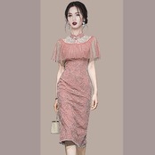 Discount store mall counters withdrawn women's clothing tail goods clearance Western style stand collar sweet slim temperament elegant long skirt ロング 大人ガーリー スウィート キュート カジュアル エレガント スカート スリム missry33681893918 | guttiy