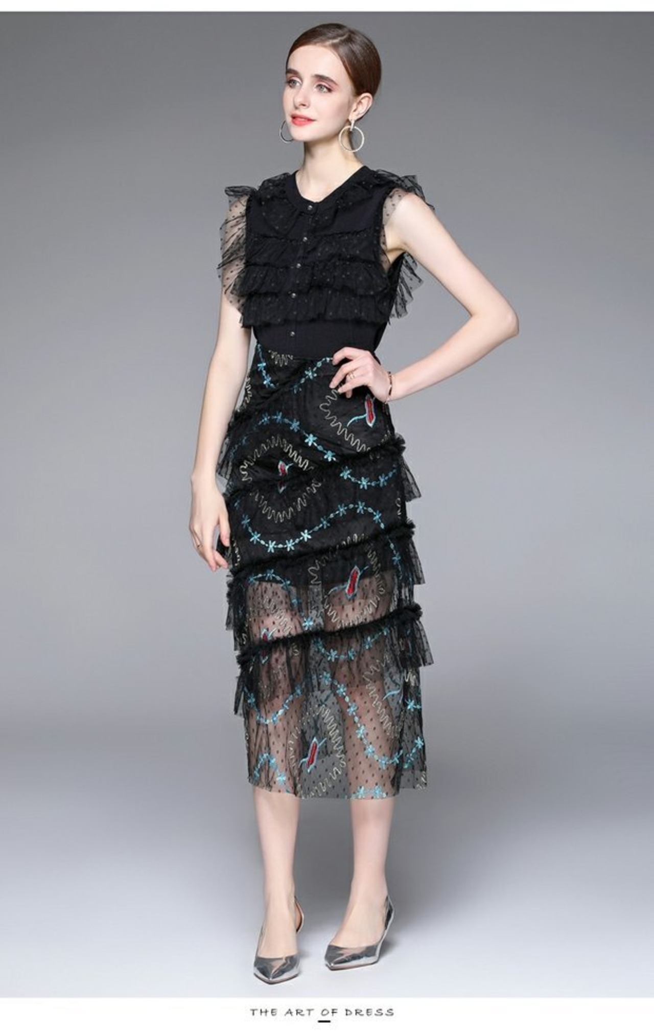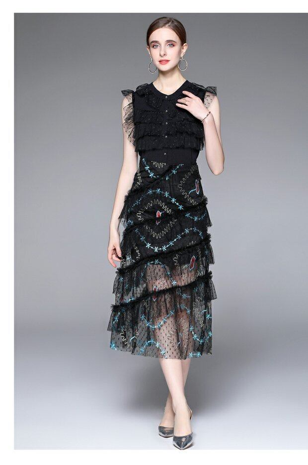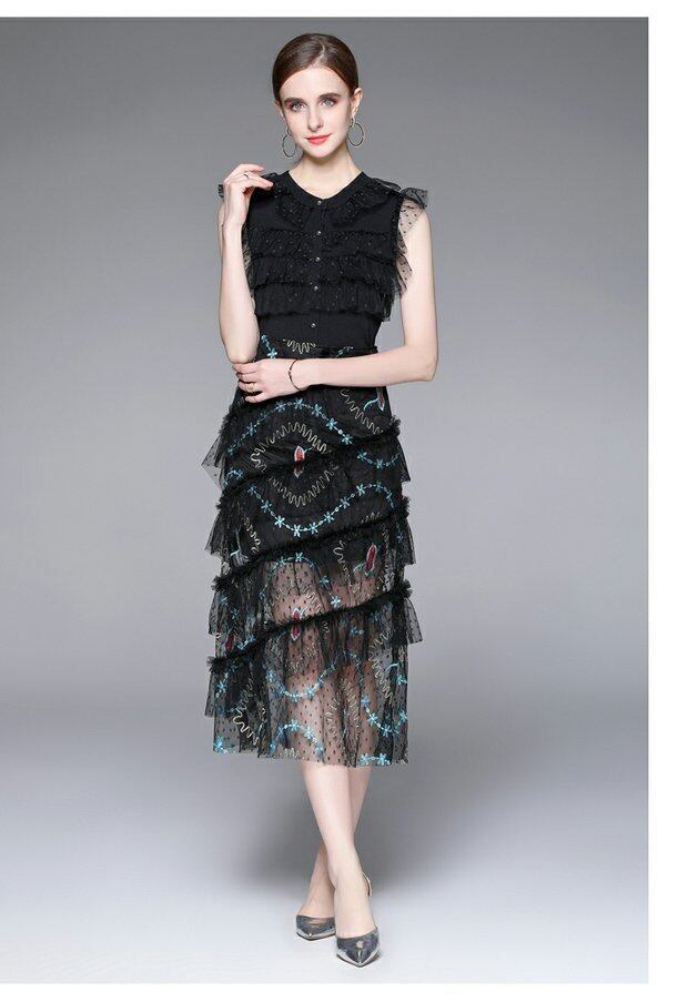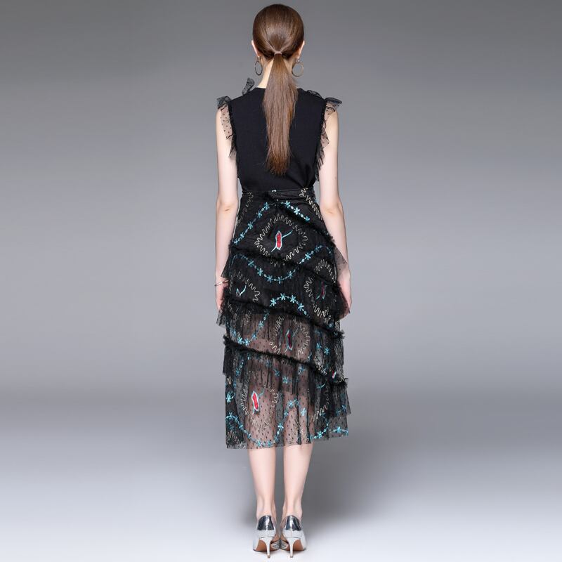 Discount store mall counters withdrawn women's clothing tail goods clearance black mesh light luxury suit skirt skirt two-piece set ブラック メッシュ スカート missry85563497880 | guttiy