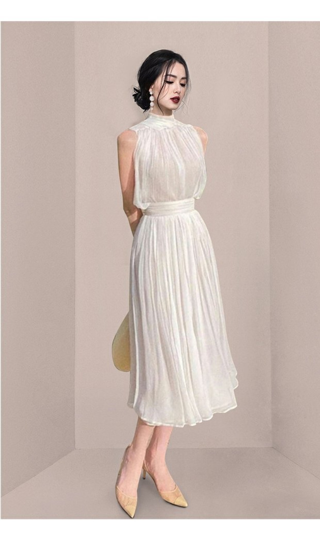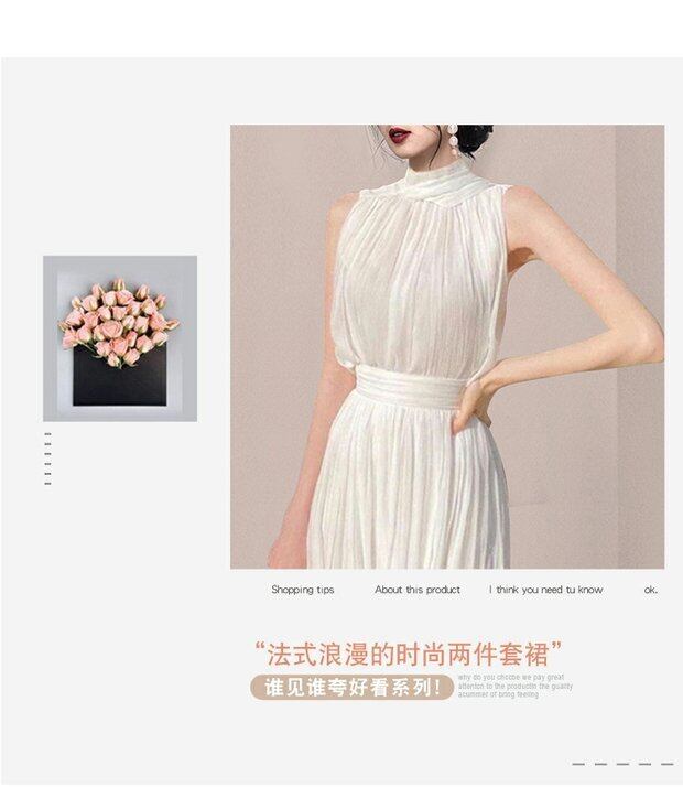 Discount store mall counters withdrawn women's clothing tail goods clearance public design sleeveless simulation silk wrinkle streamer suit skirt ノースリーブ スカート シルク missry1534651186 | guttiy
