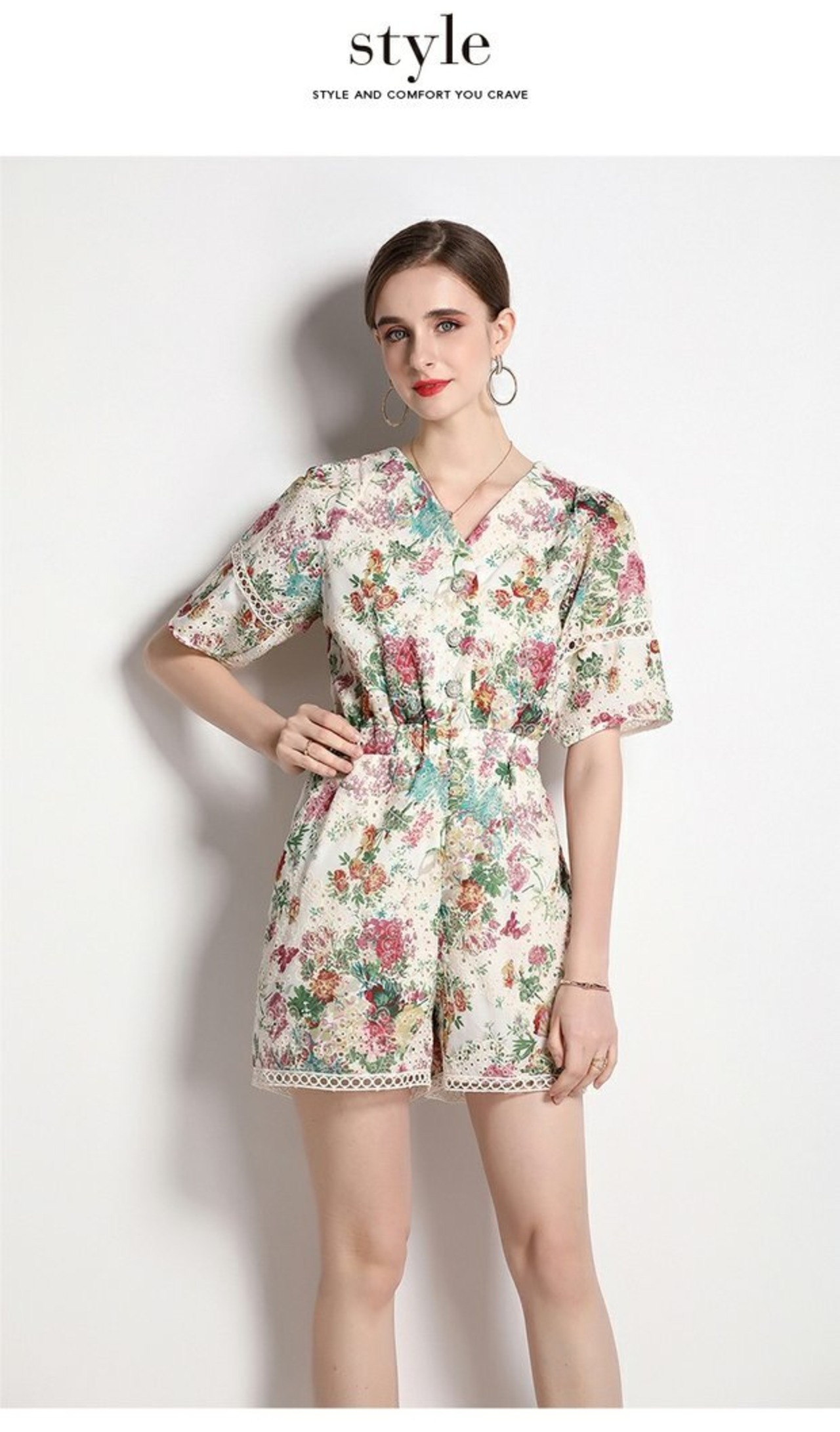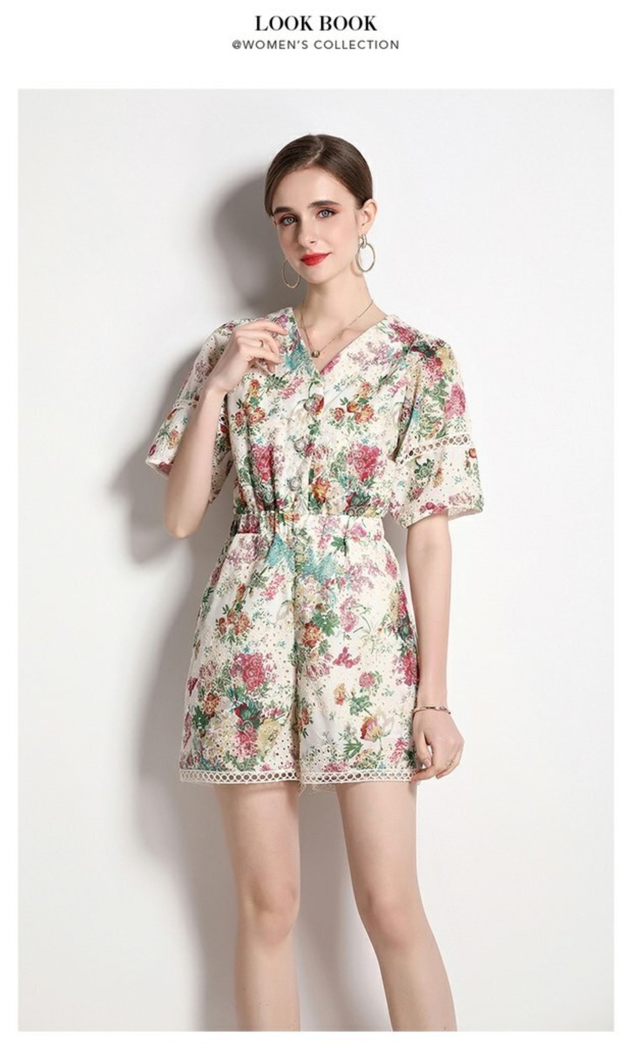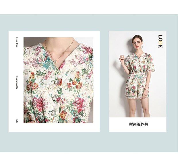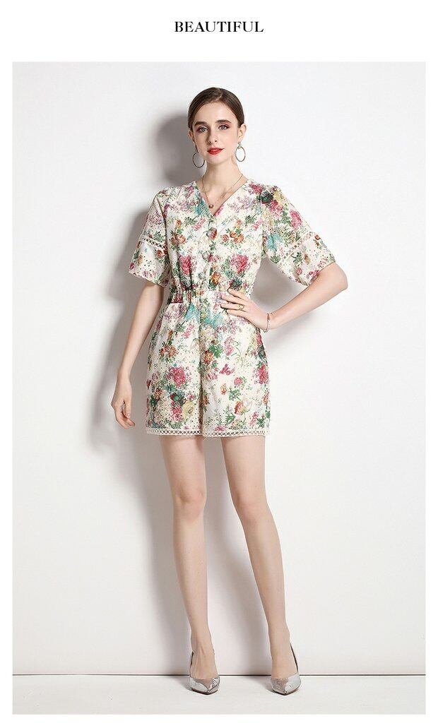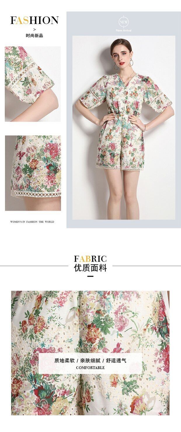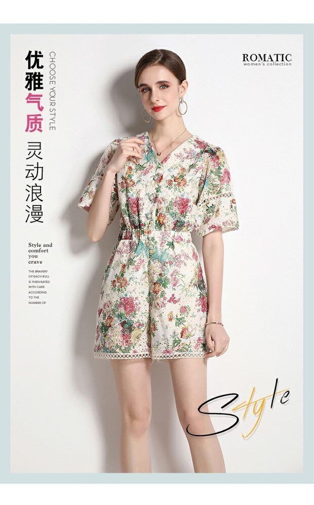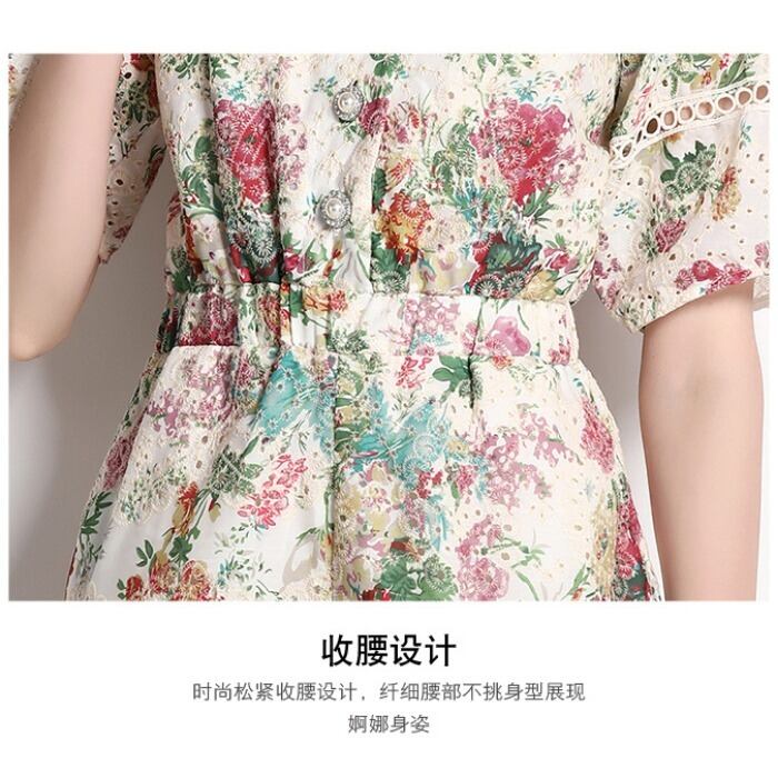 Discount store mall counters withdrawn women's clothing tail goods clearance flowers hollowed-out short-sleeved holiday style wide-leg jumpsuit フラワーデザイン missry48366864565 | guttiy