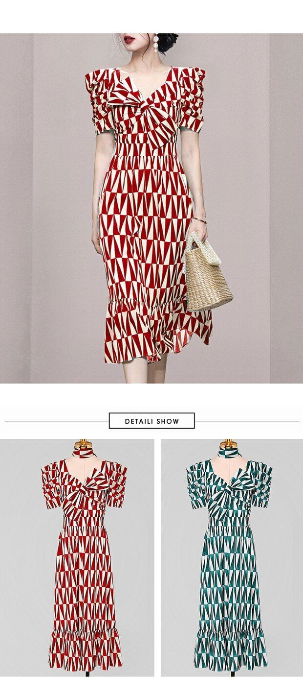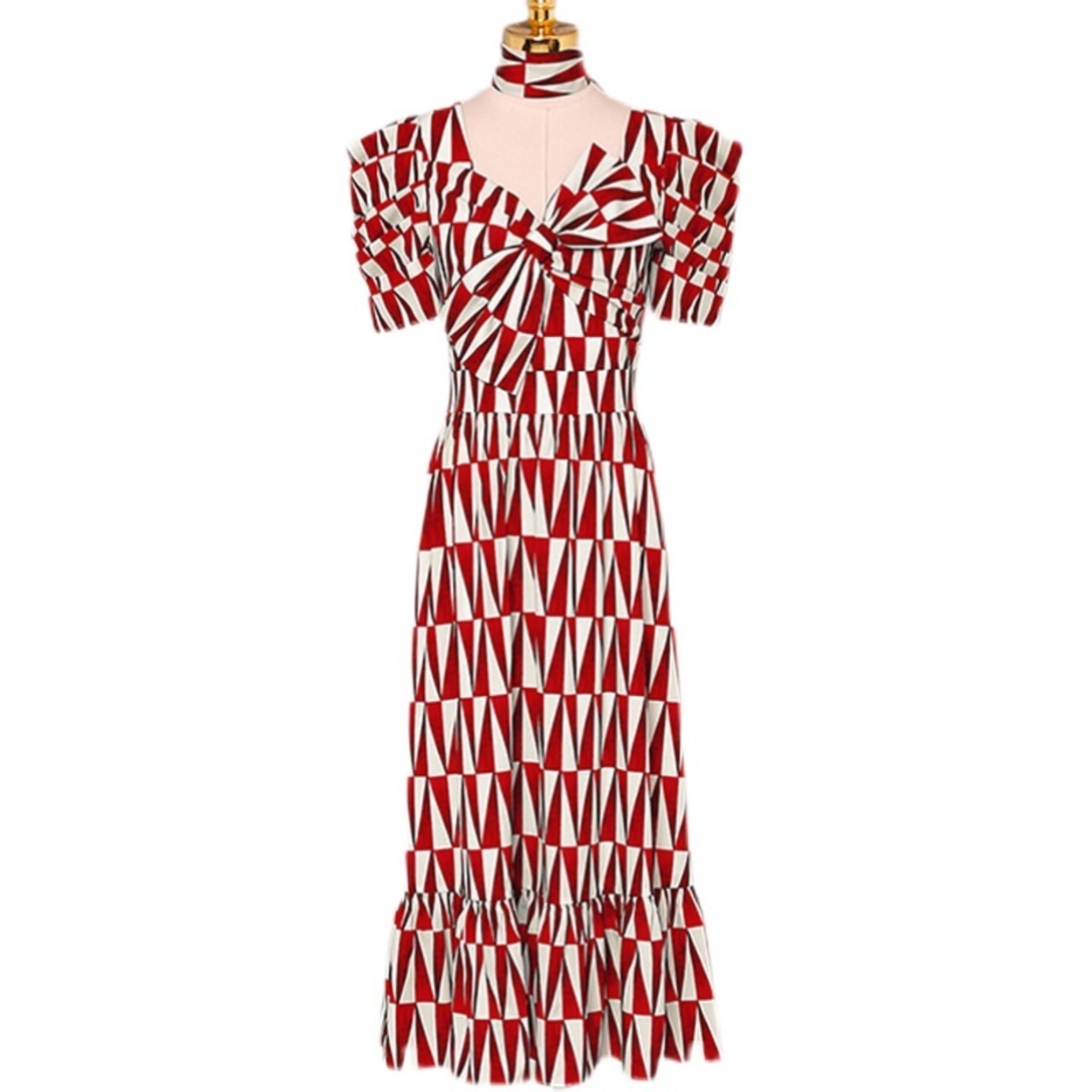 Discount store mall counters withdrawn women's clothing tail goods clearance show thin bow print large swing long skirt dress ロング リボン スカート missry94691880487 | guttiy