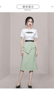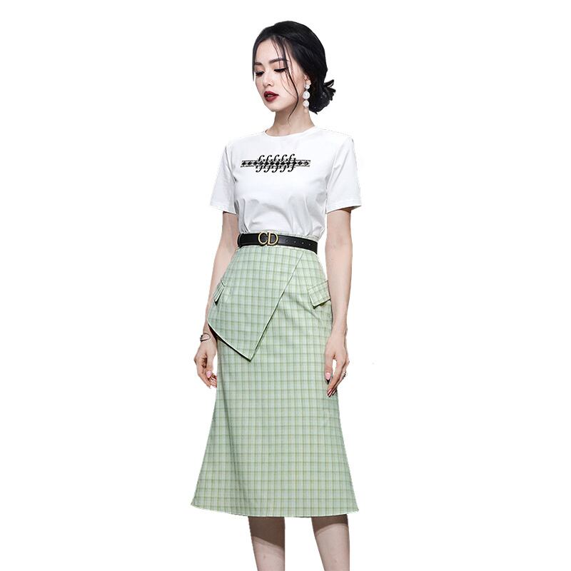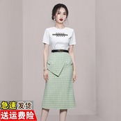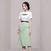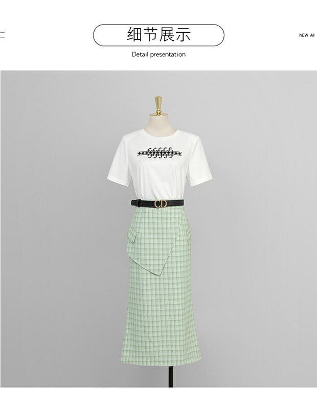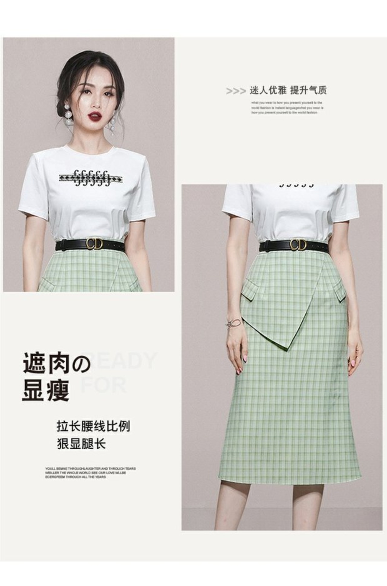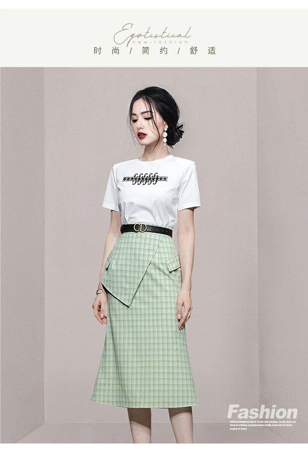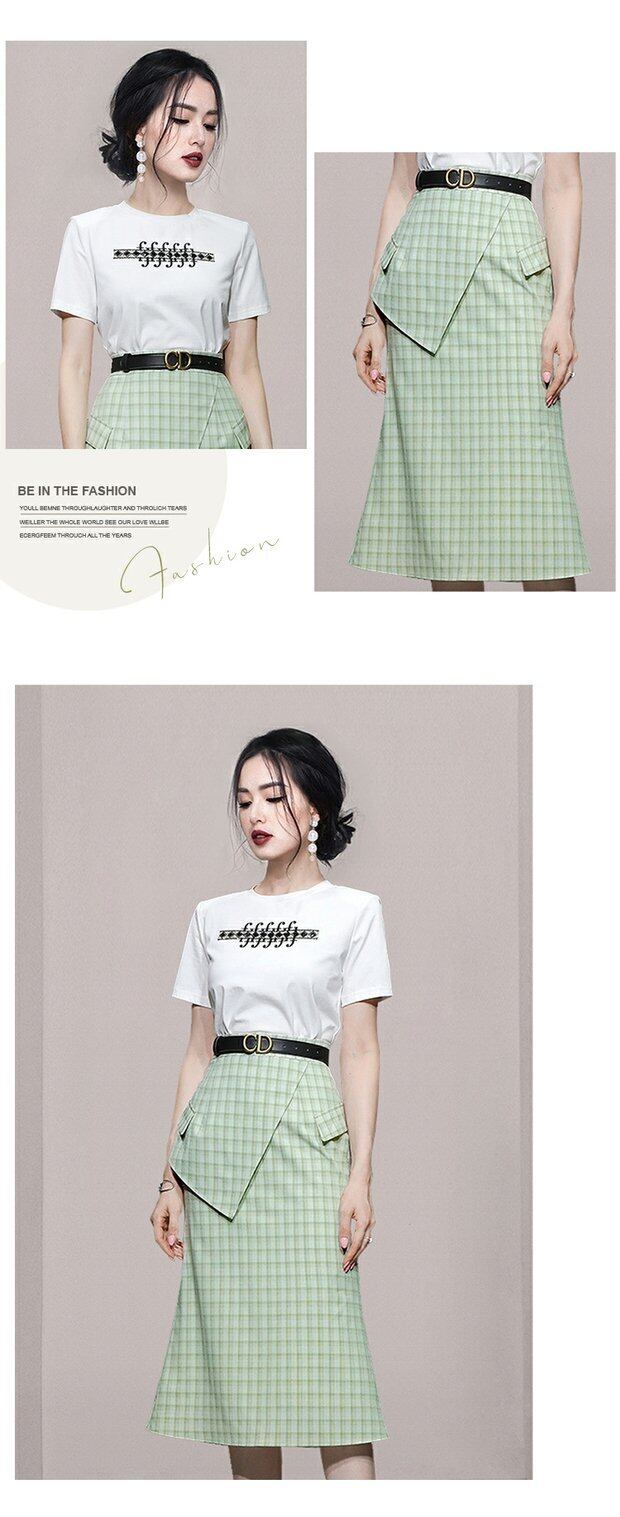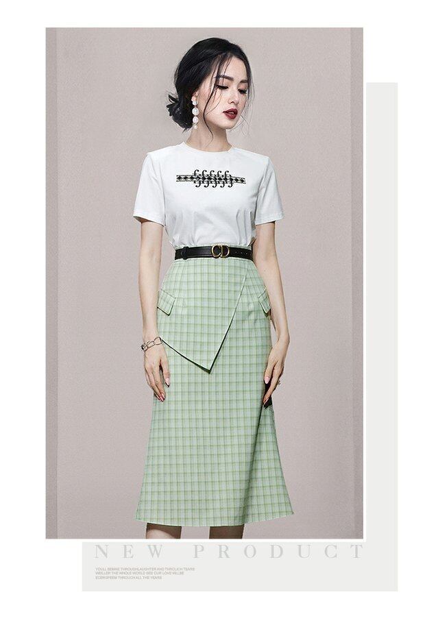 Discount Store Mall Counters Withdrawal Women's Clearance Embroidered T-Shirts Waist Slim Fit Plaid Skirts Two-piece Set レッド シャツ 刺繍 スカート スリム Tシャツ missry45403674802 | guttiy