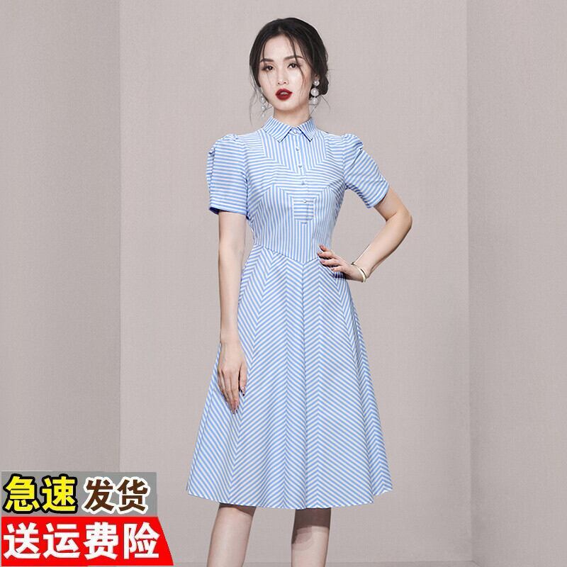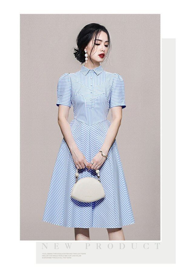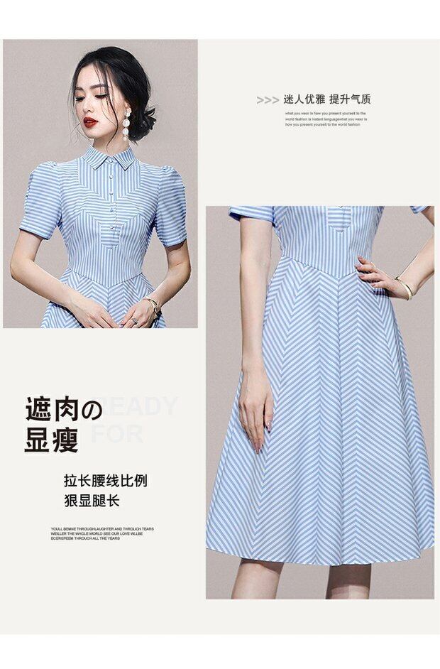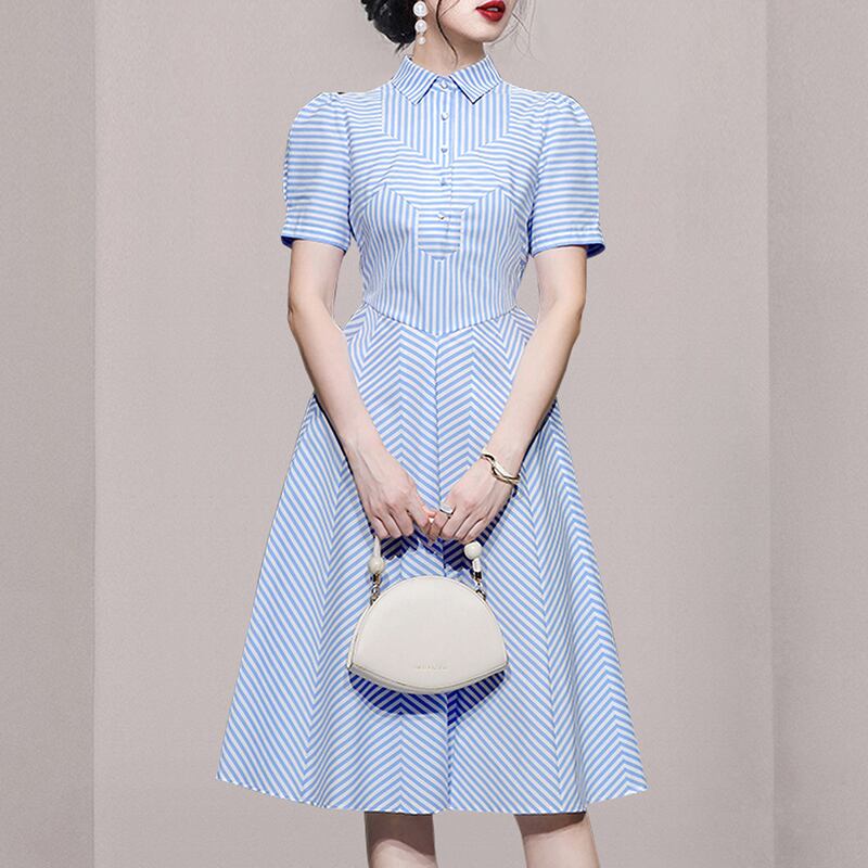 Discount Store Mall Counters Withdrawal Women's Tail Clearance Puff Sleeves Waist Thin Splicing Striped Dress ストライプ missry13562517079 | guttiy