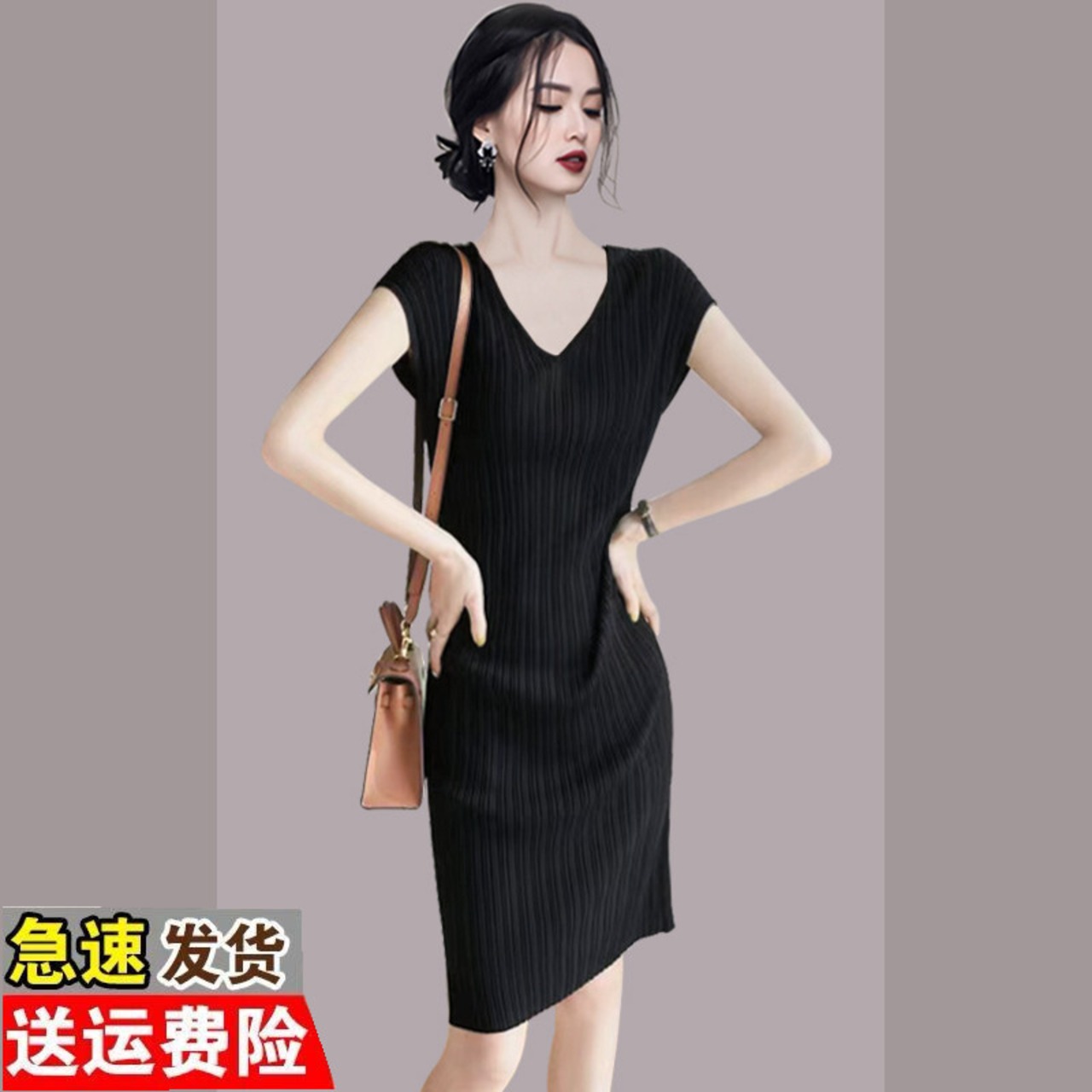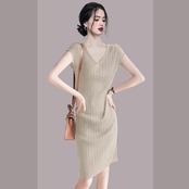 Discount store mall counters withdrawn women's clothing tail stock clearance medium and long V-neck fashionable temperament sweet dress ロング 大人ガーリー スウィート キュート カジュアル Vネック missry27027769139 | guttiy