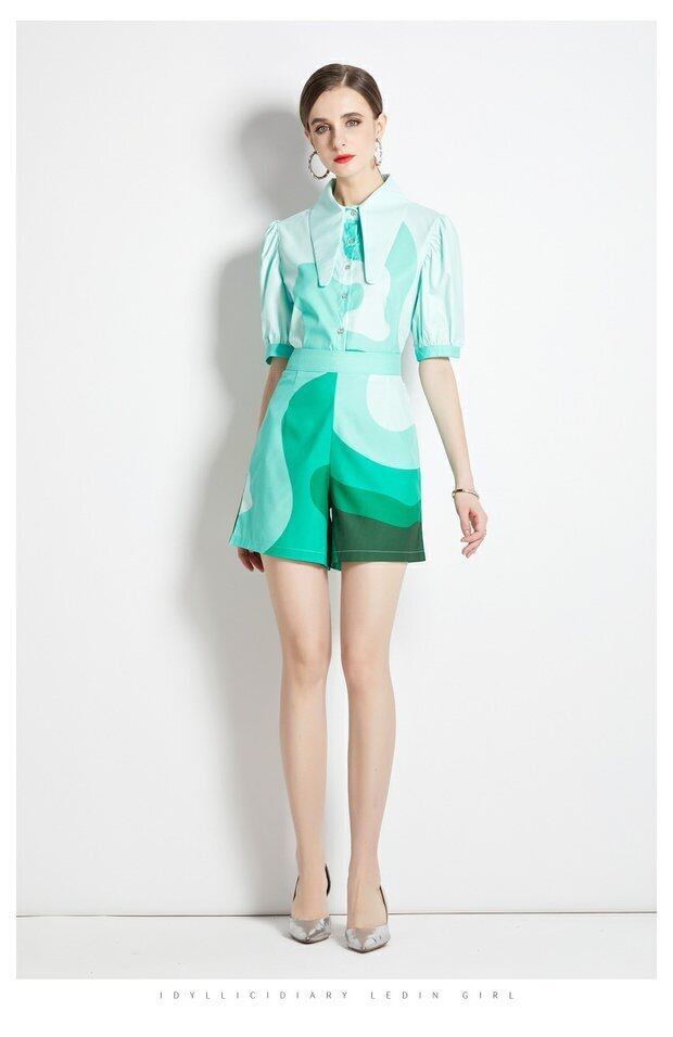 Discount store mall counter withdrawal women's clothing tail stock clearance shirt waist shorts Chinese style print two-piece women's ショーツ ブルマー missry96696746983 | guttiy